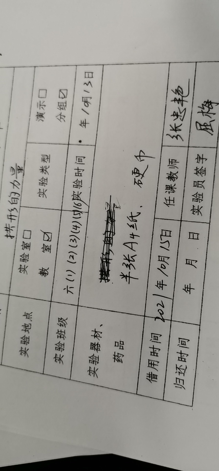 实验登记表