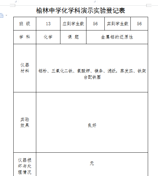 实验登记表