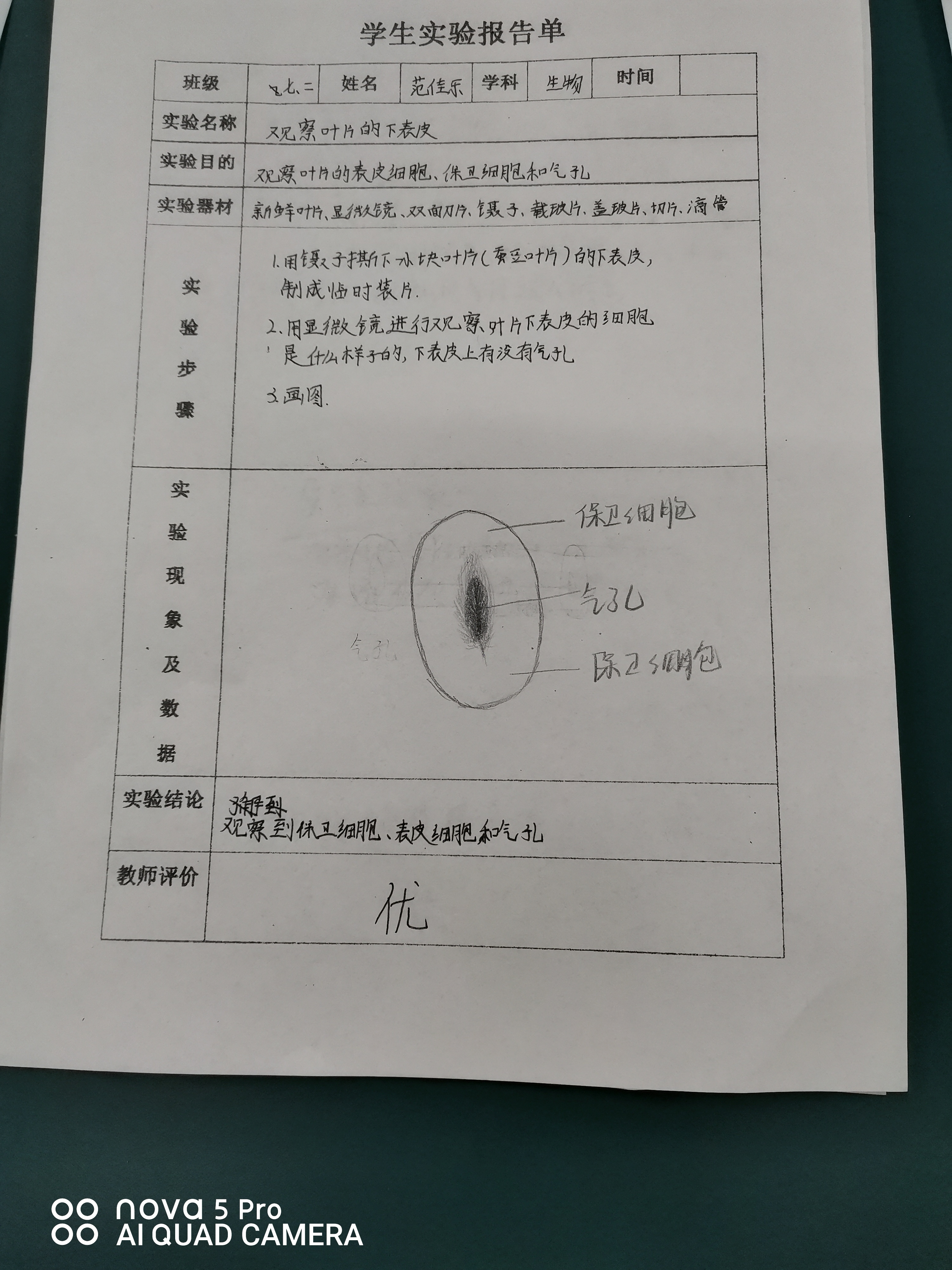 新版上册-第三章>第三节>3.3观察叶片的下表皮
