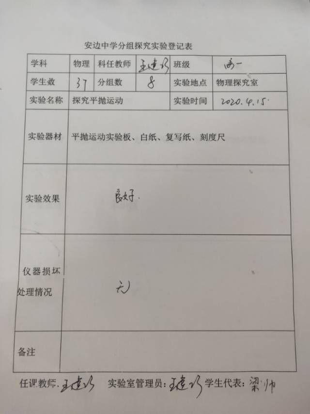 实验登记表
