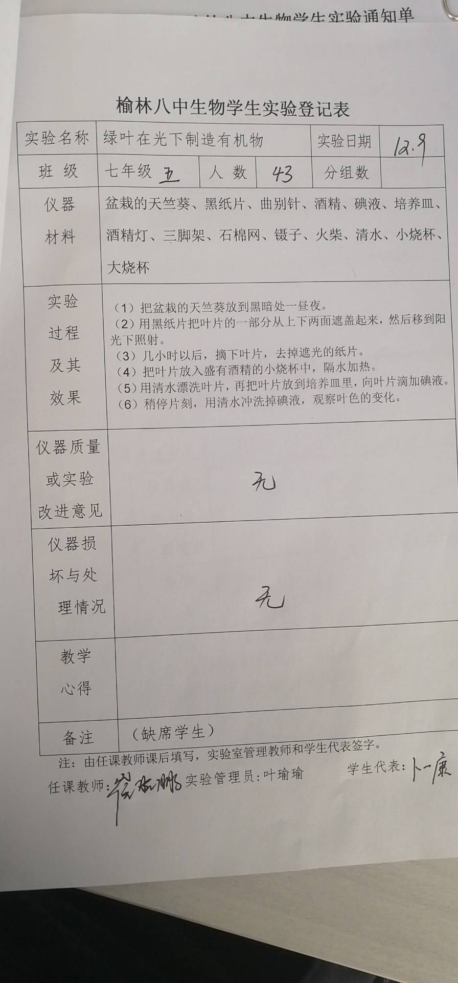 实验登记表