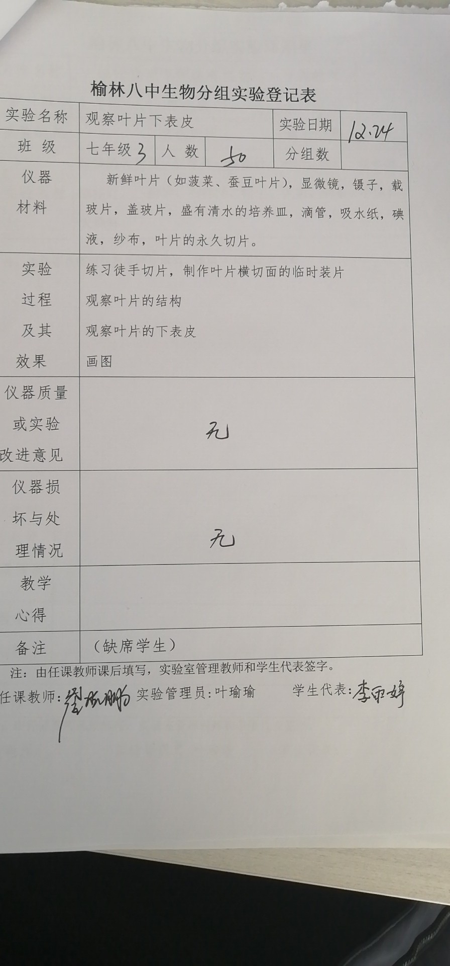 实验登记表