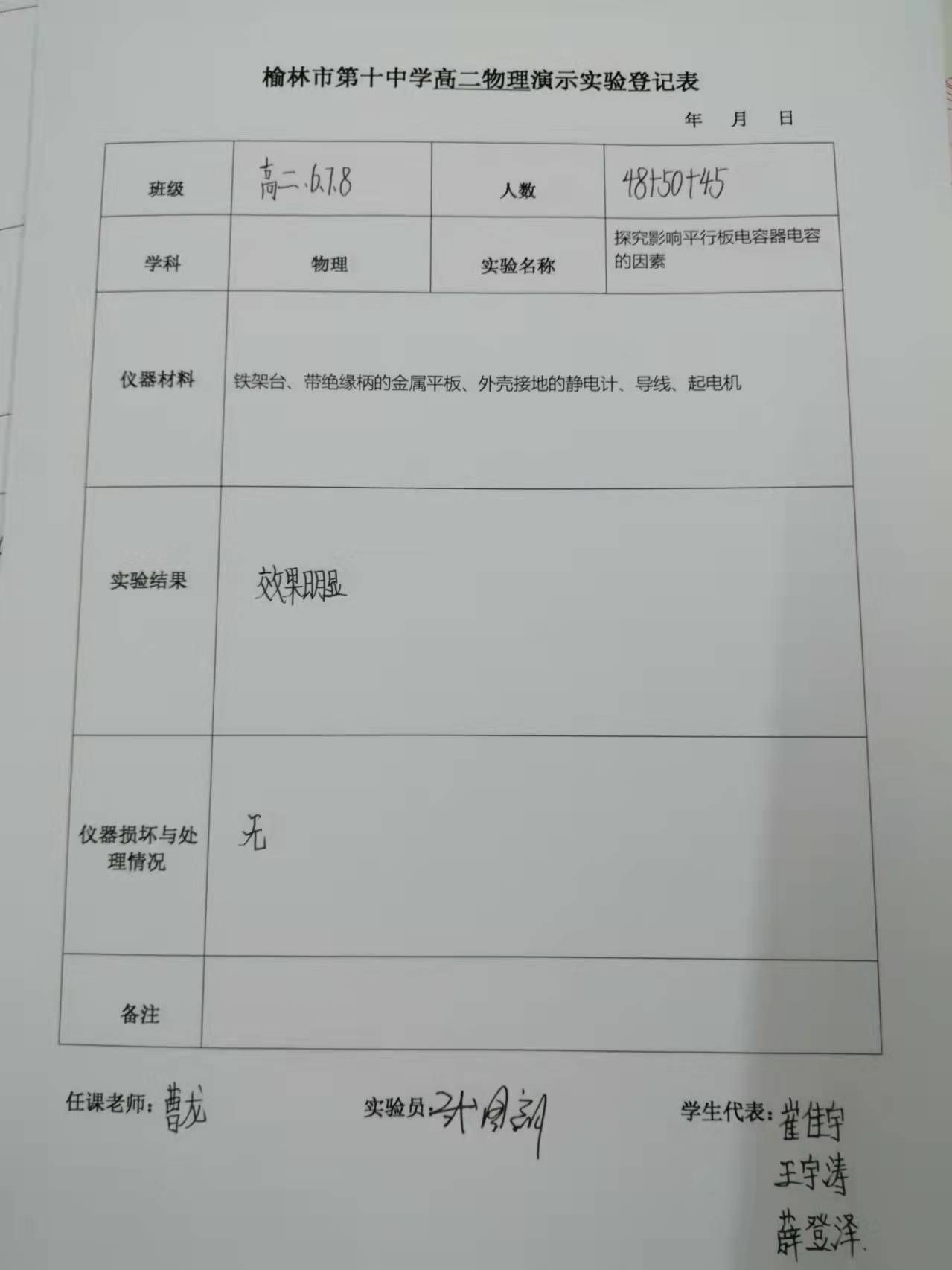 实验登记表