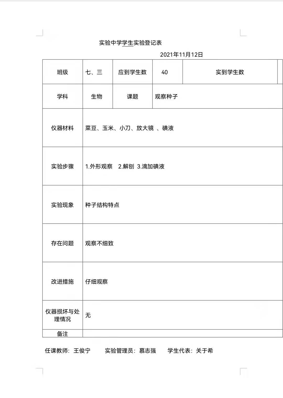 实验登记表