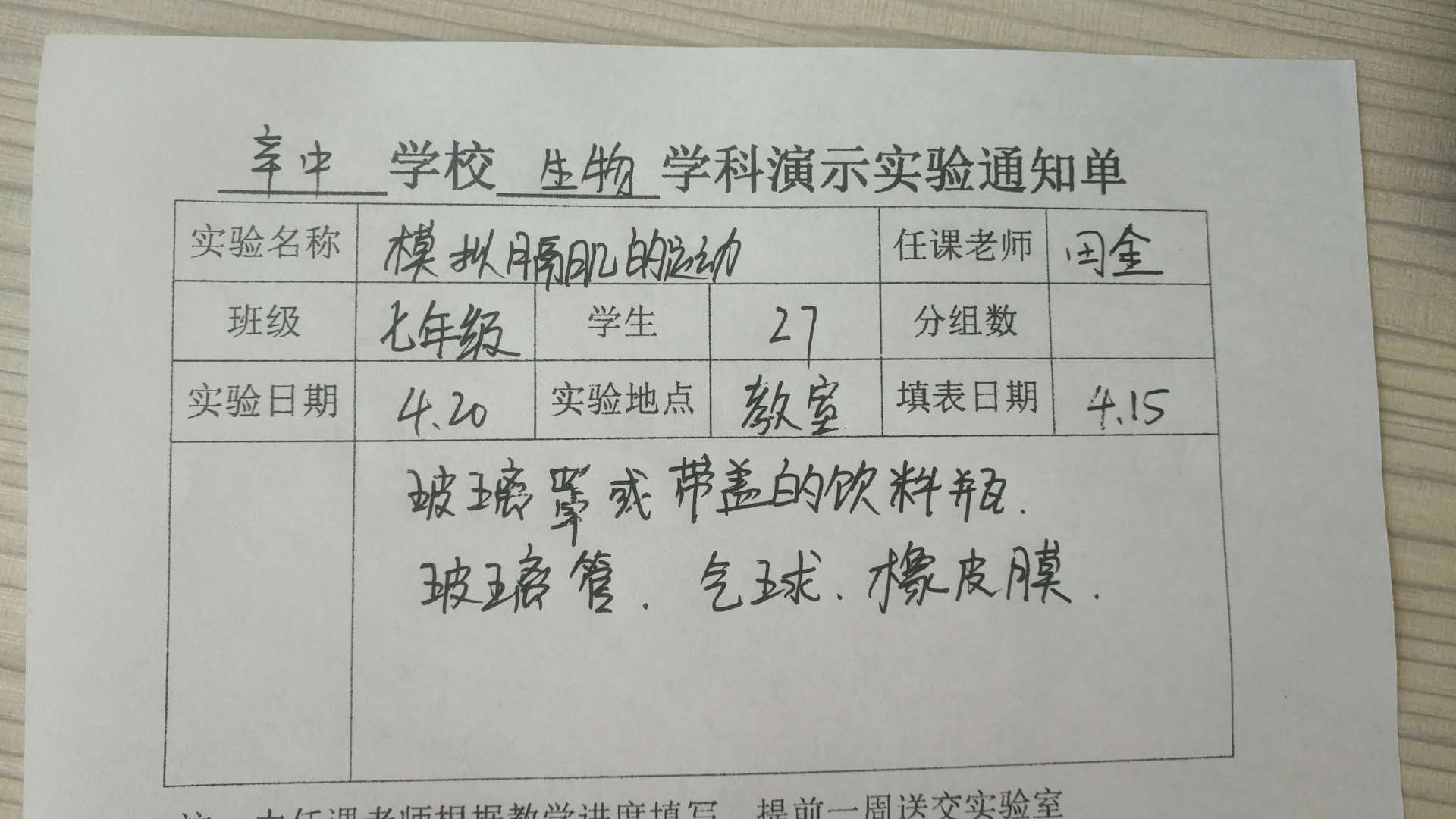 实验登记表