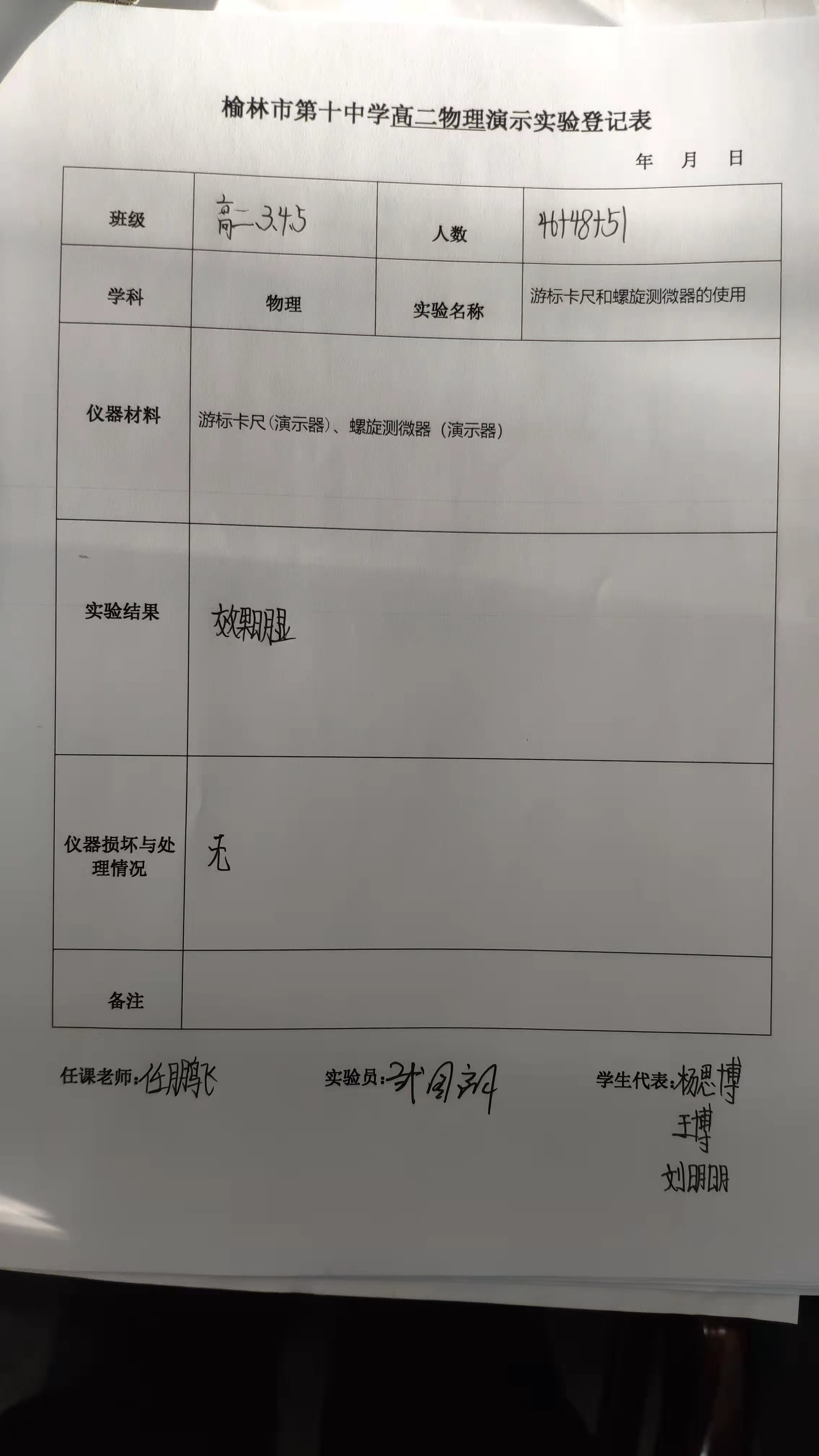 实验登记表
