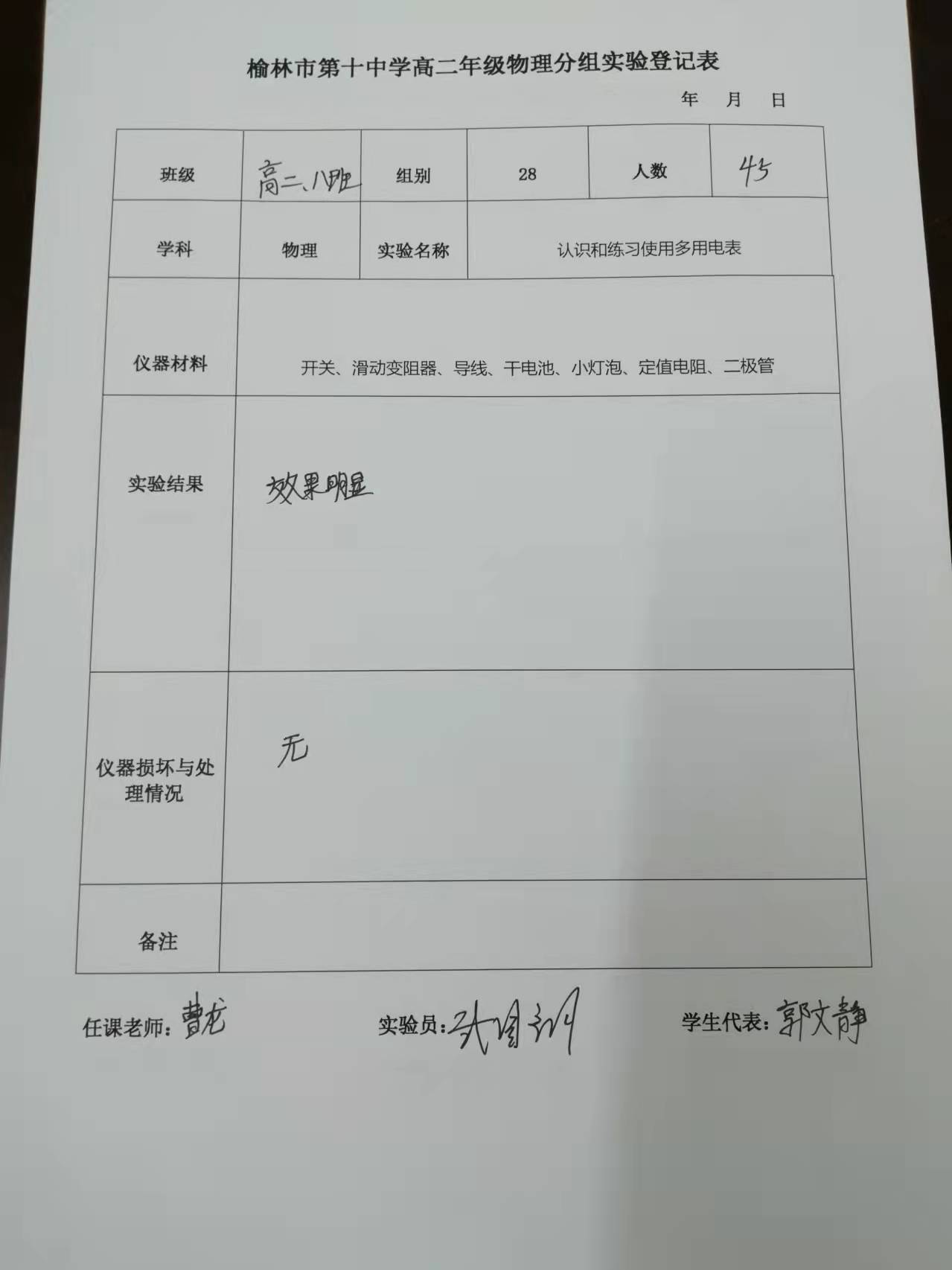 实验登记表