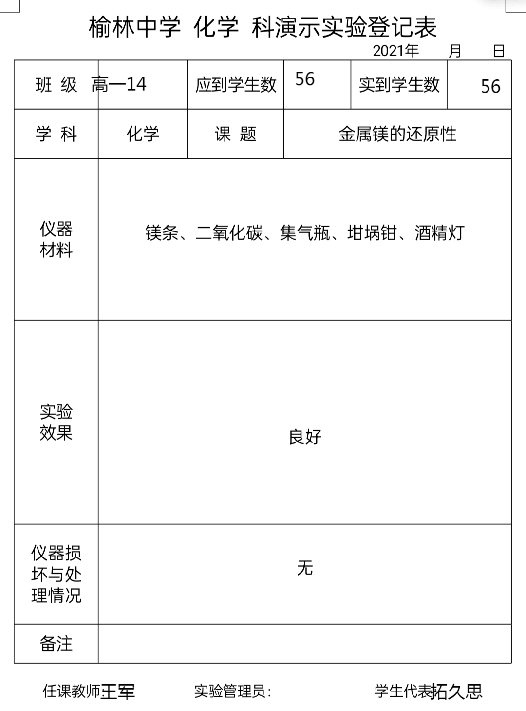 实验登记表