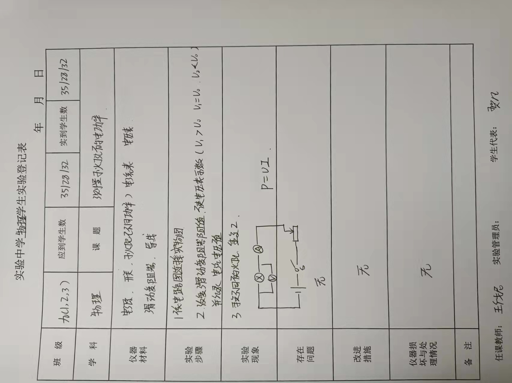 实验登记表