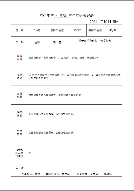 实验登记表