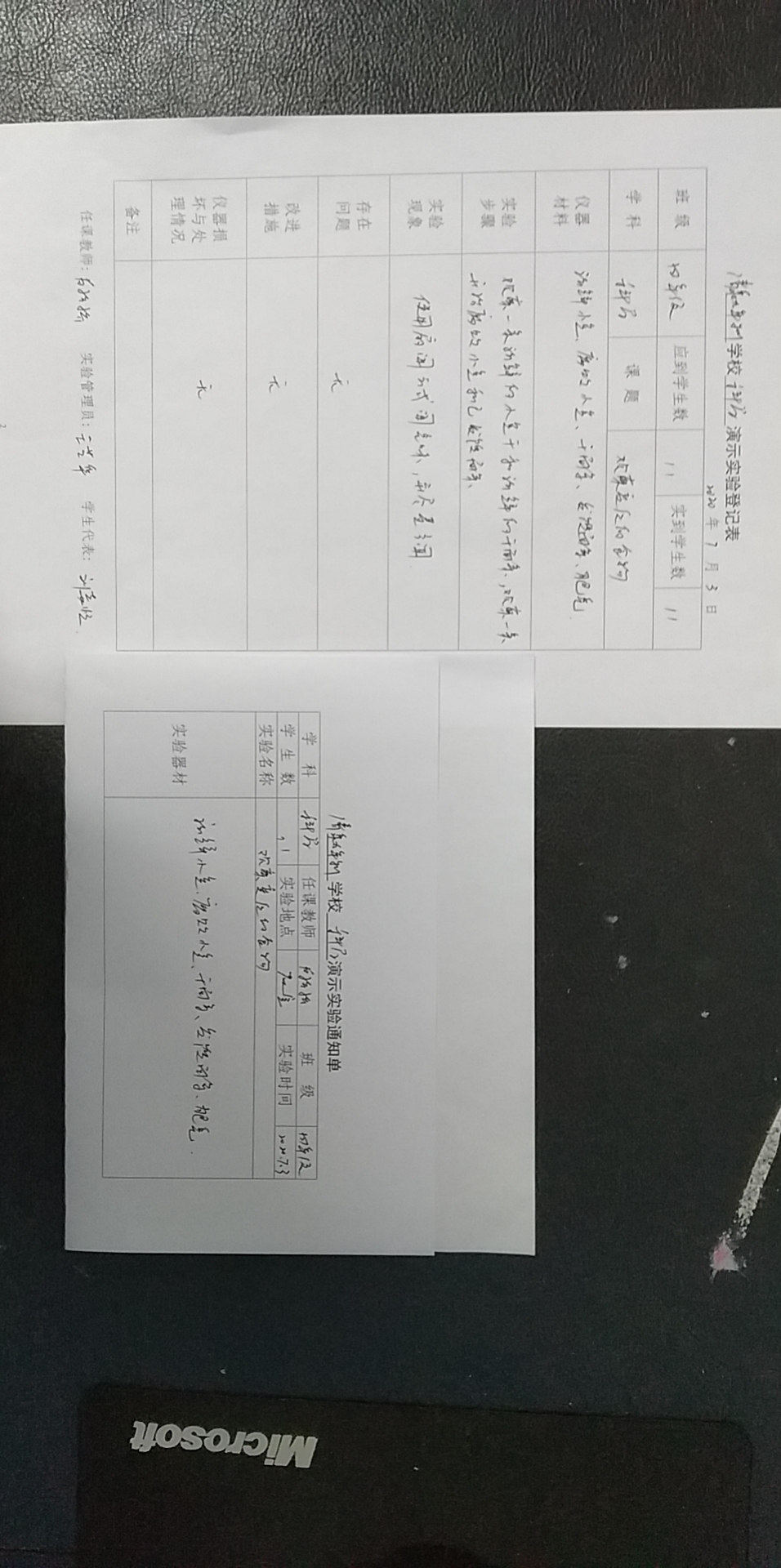 实验登记表