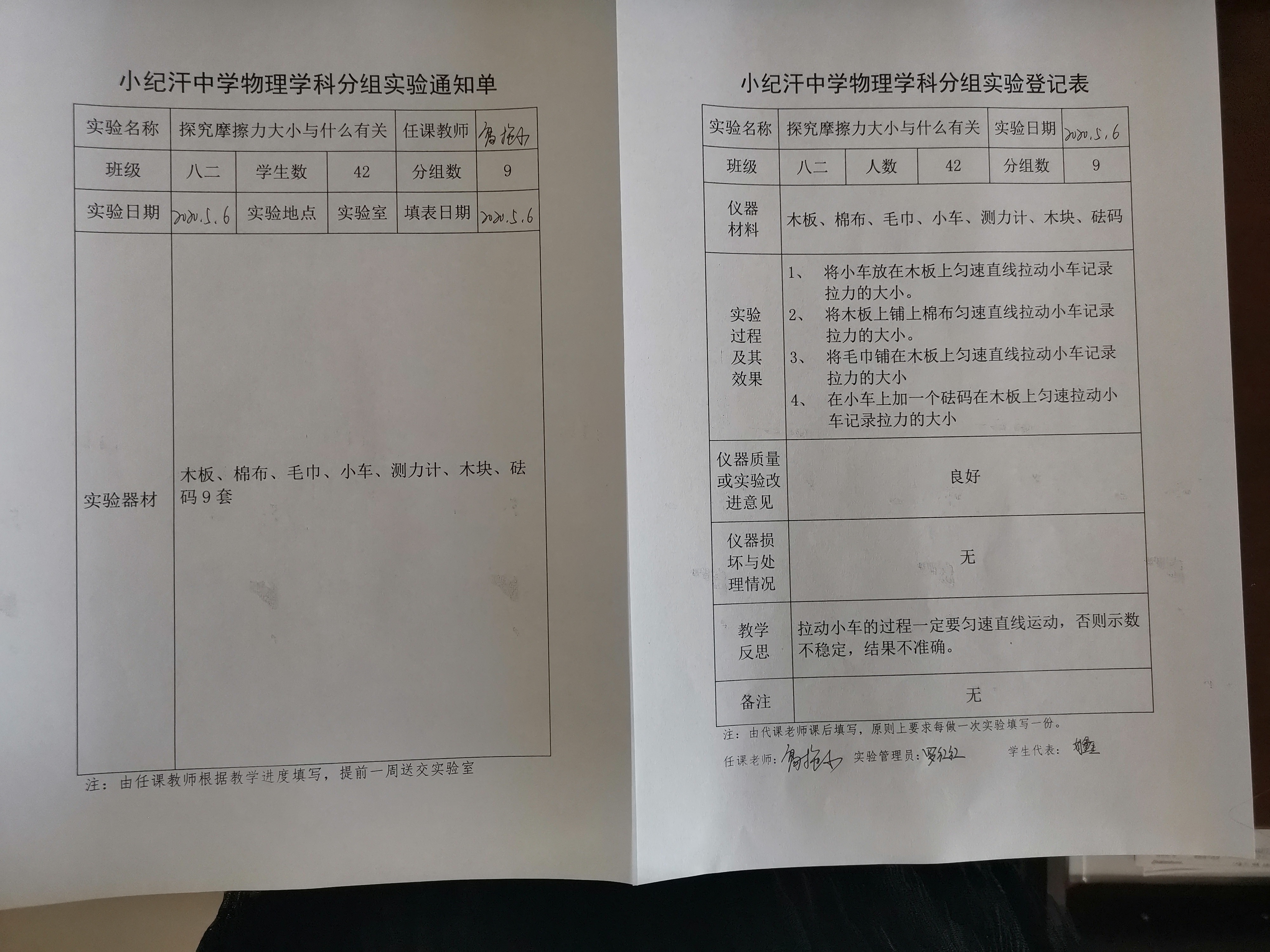 实验登记表