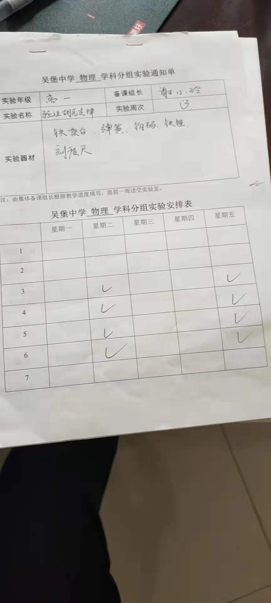 实验登记表