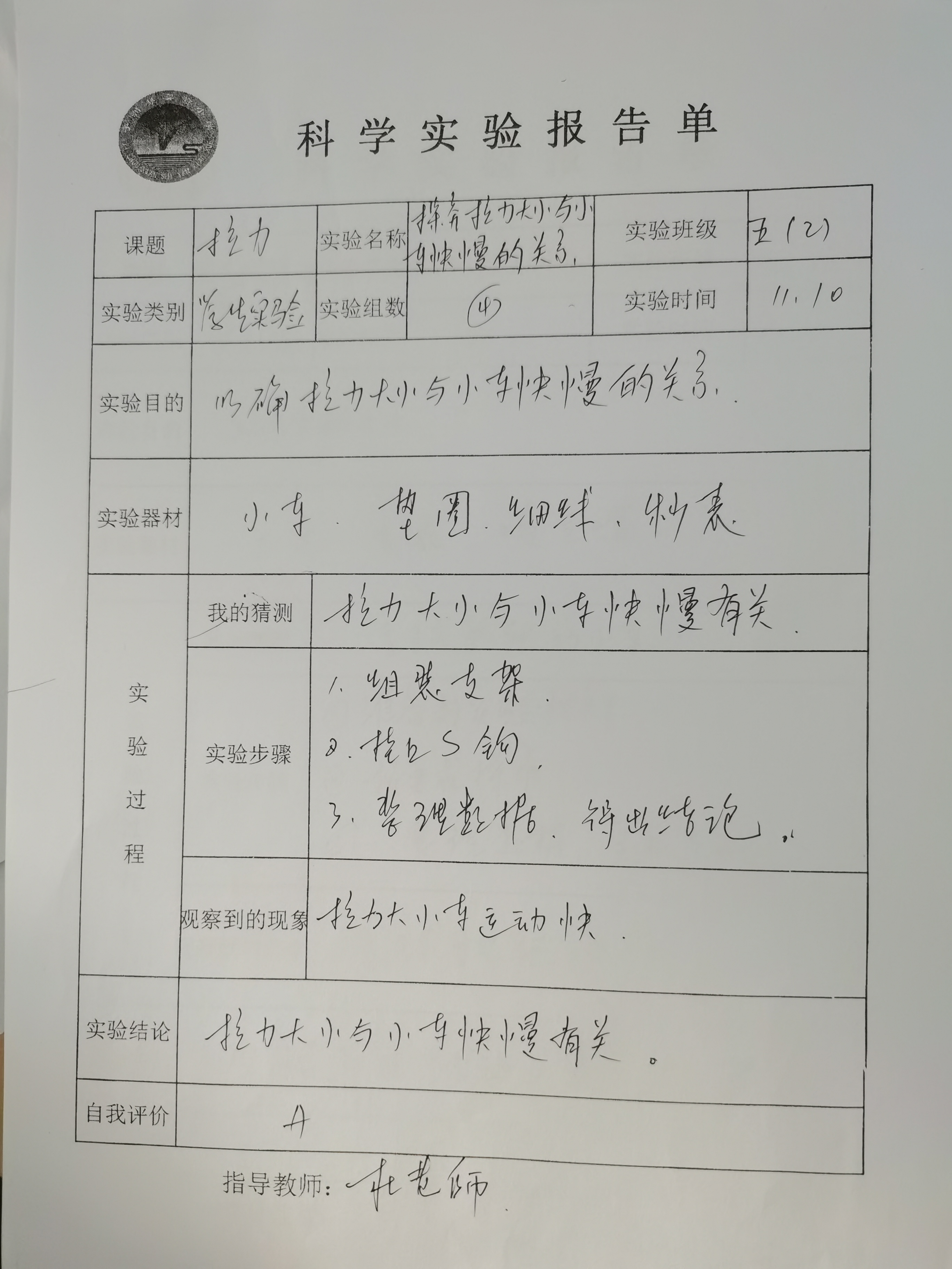 上册-第四章>第一节>4.1探究拉力大小与小车运动快慢的关系