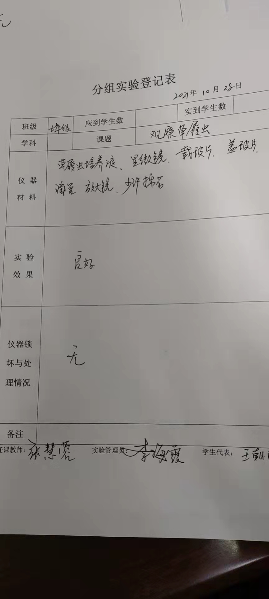 实验登记表