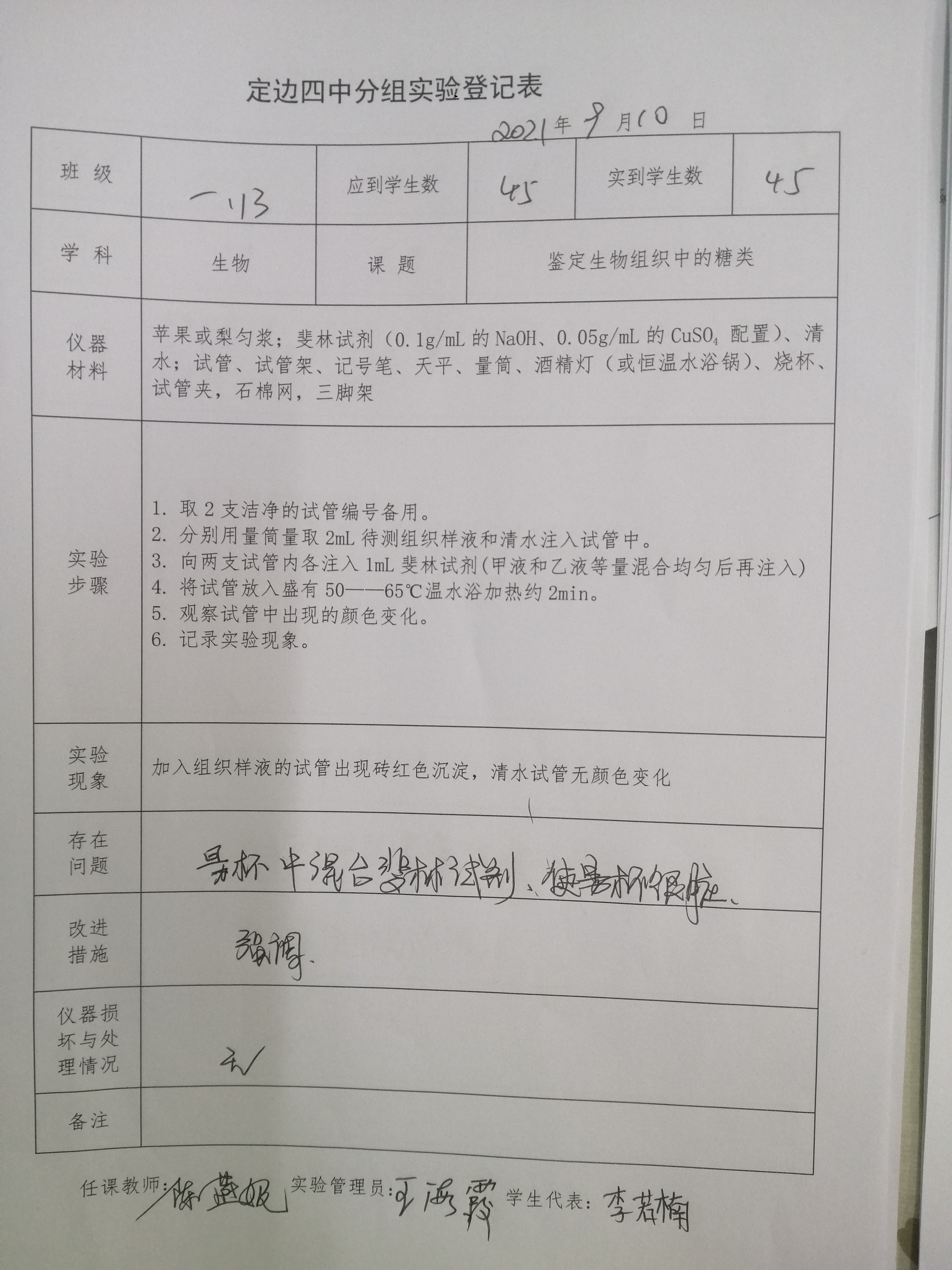 实验登记表