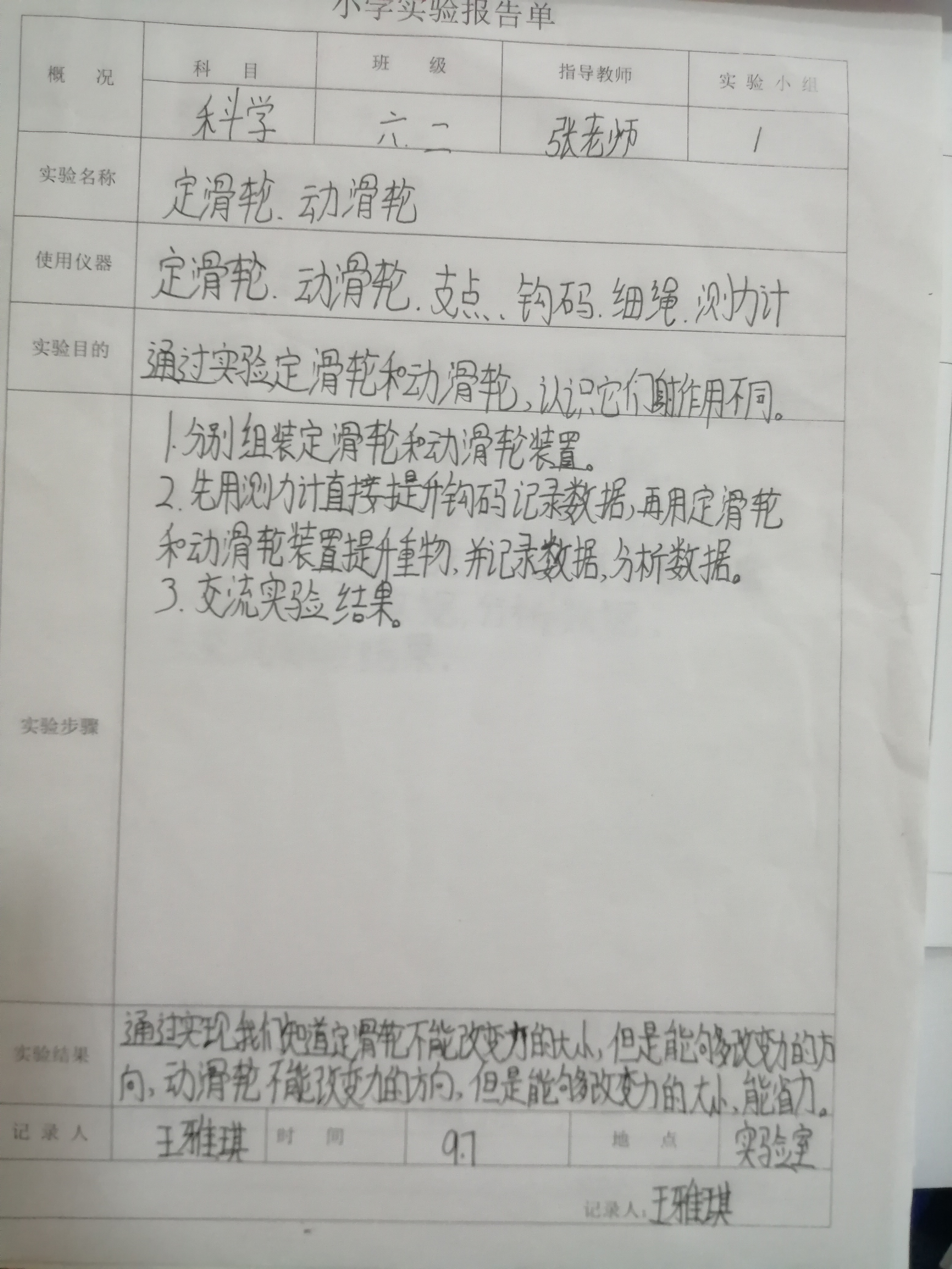 实验登记表