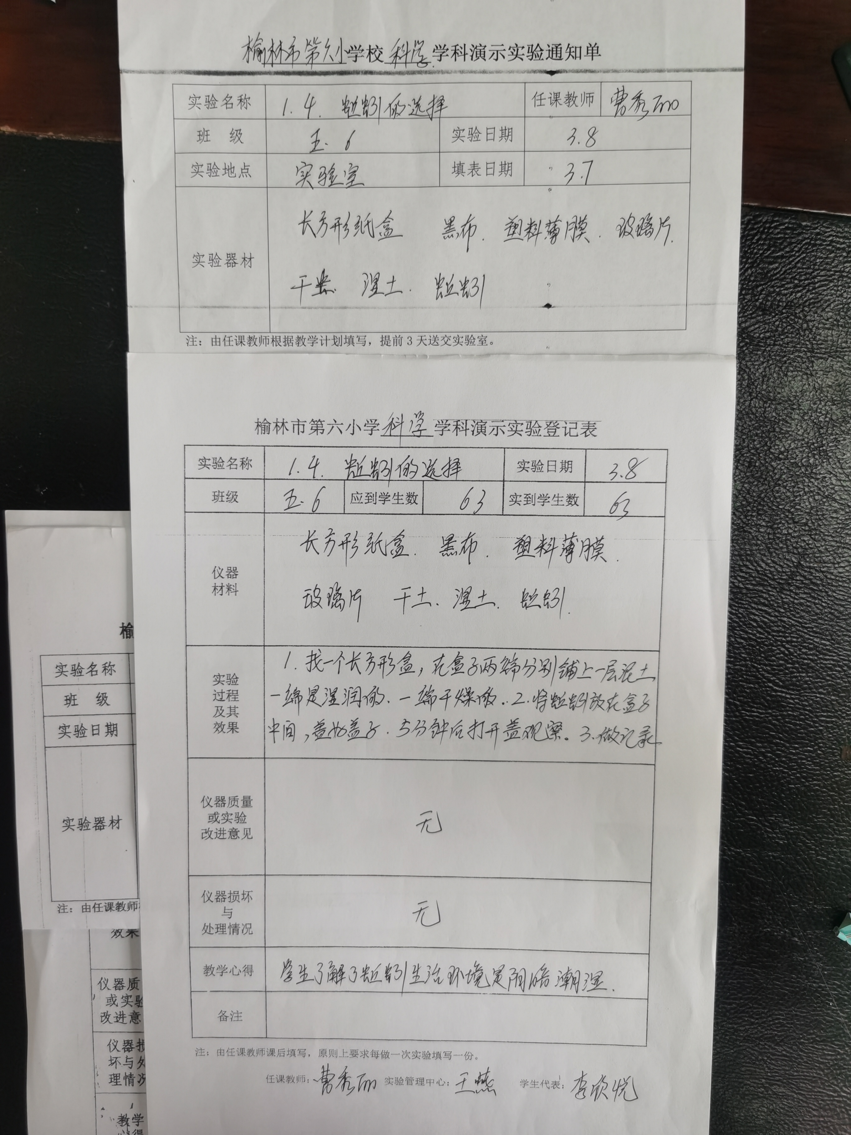 实验登记表