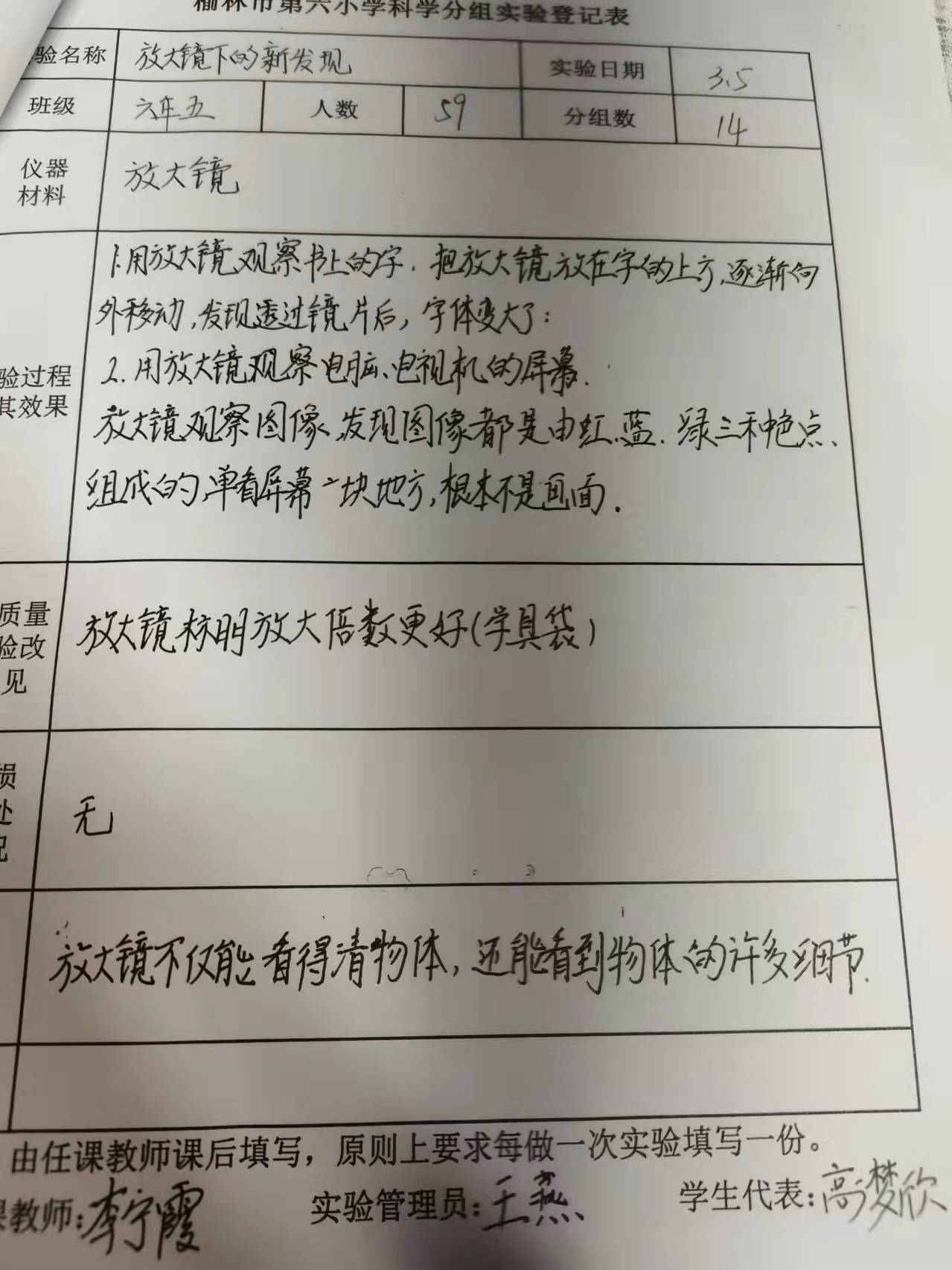 实验登记表