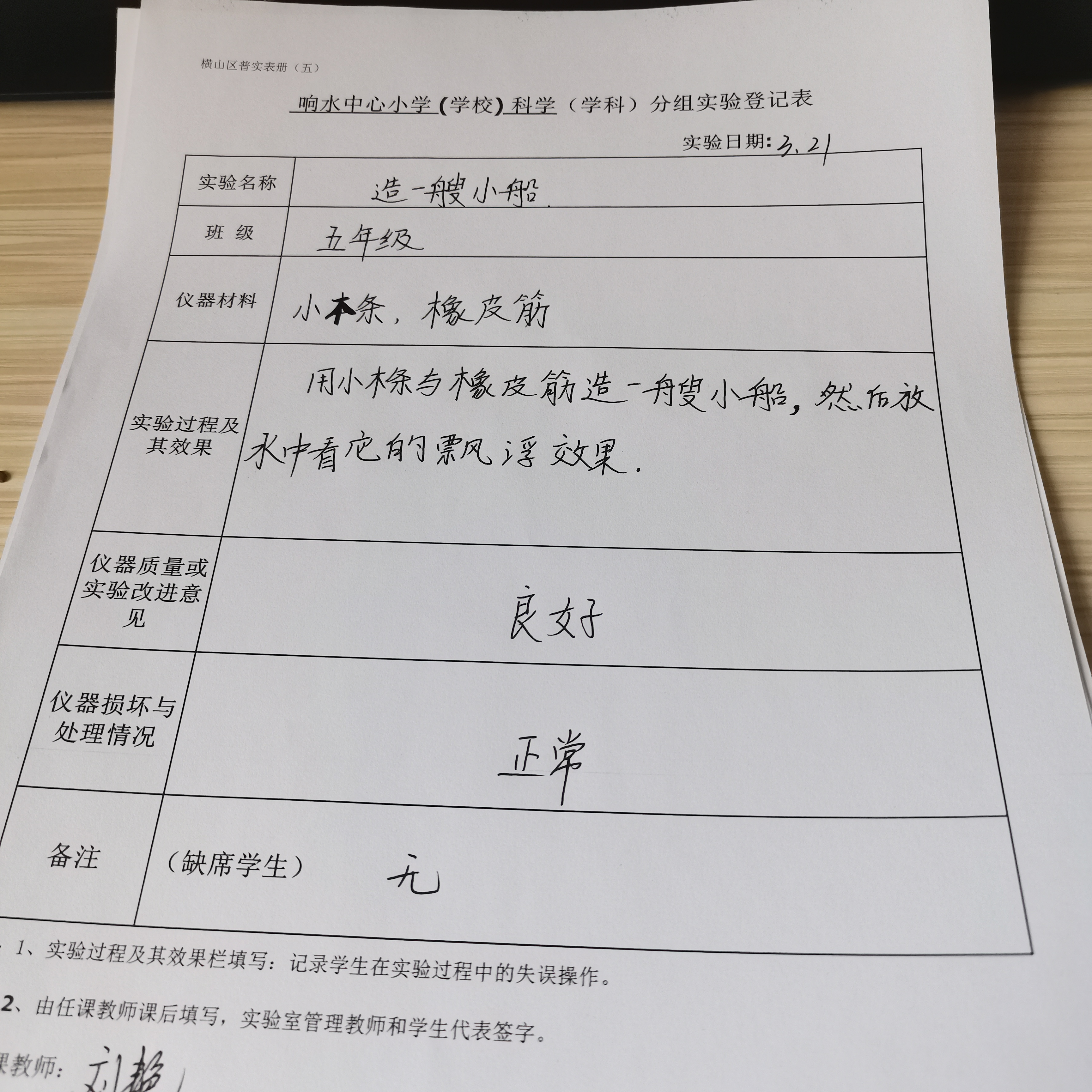 实验登记表