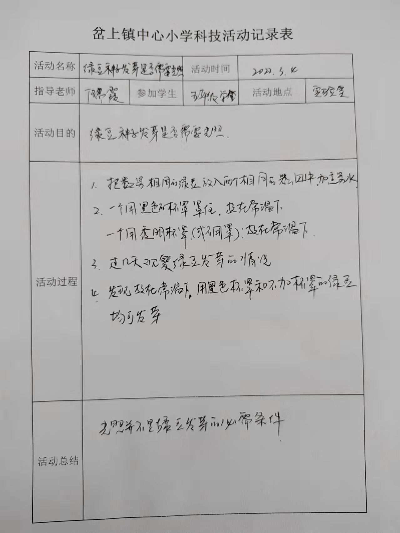 2.比较种子发芽实验(是否需要阳光)