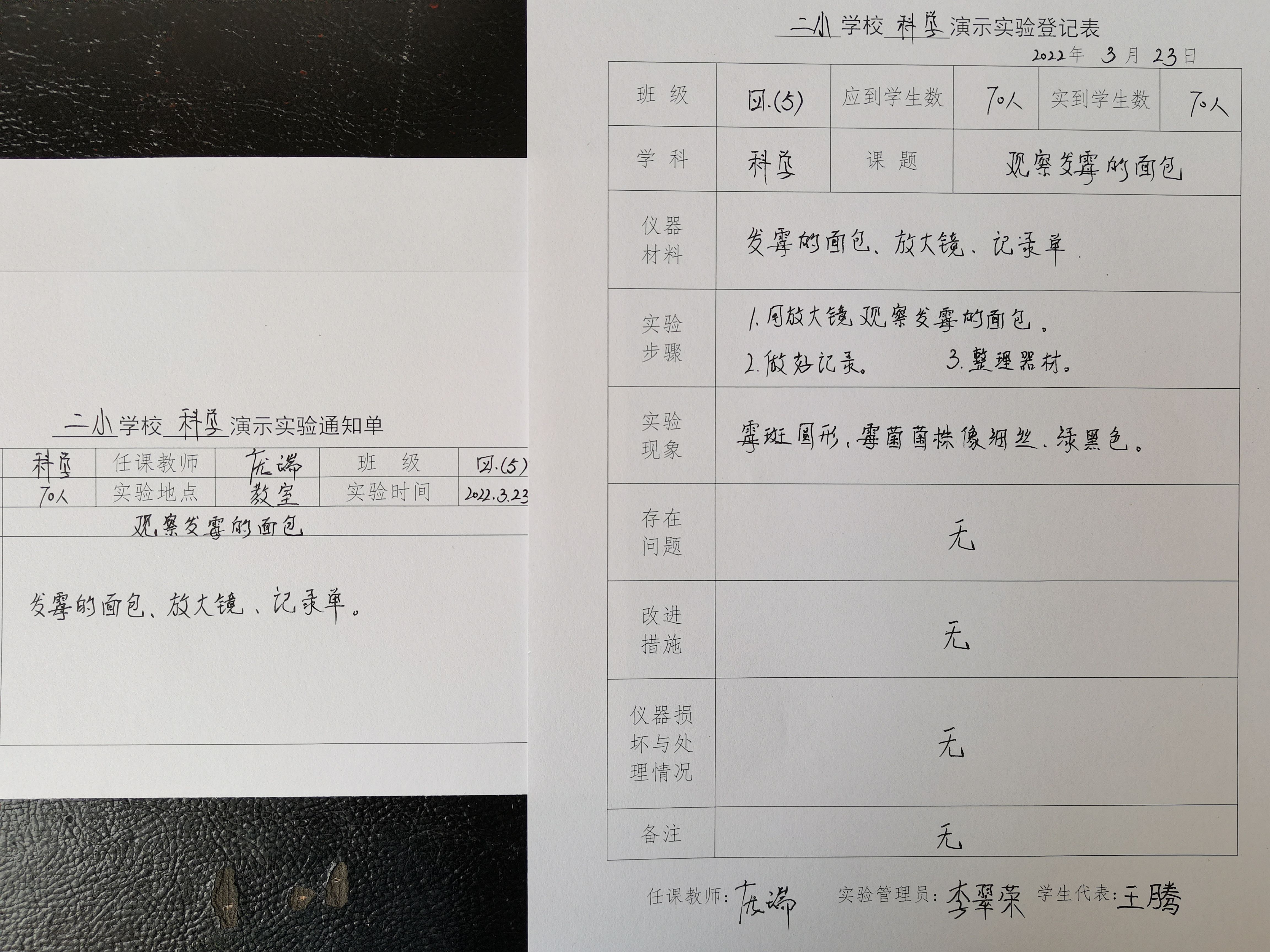 实验登记表