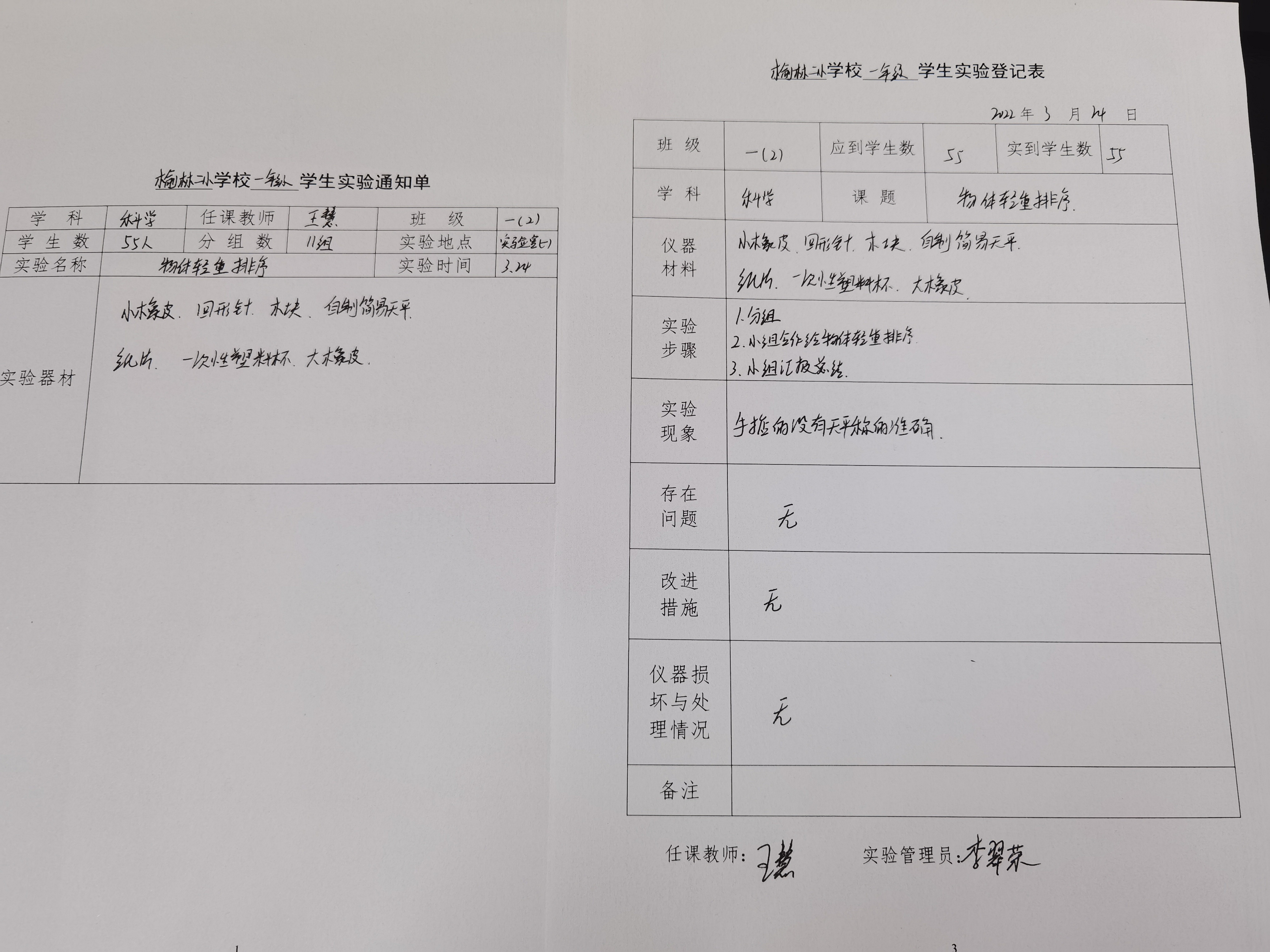 实验登记表