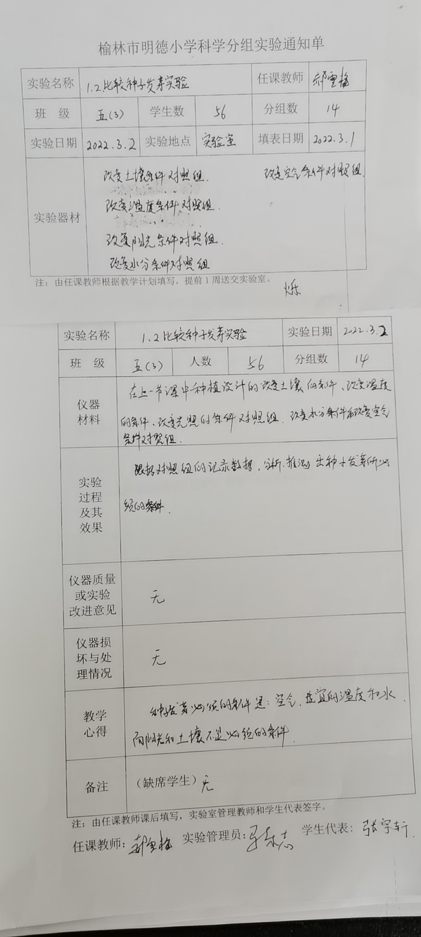 【五(3)】比较种子发芽实验