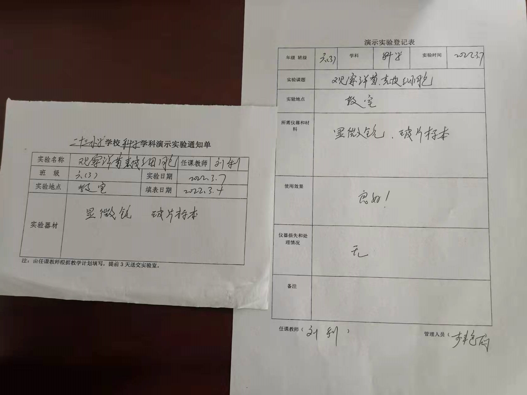 实验登记表