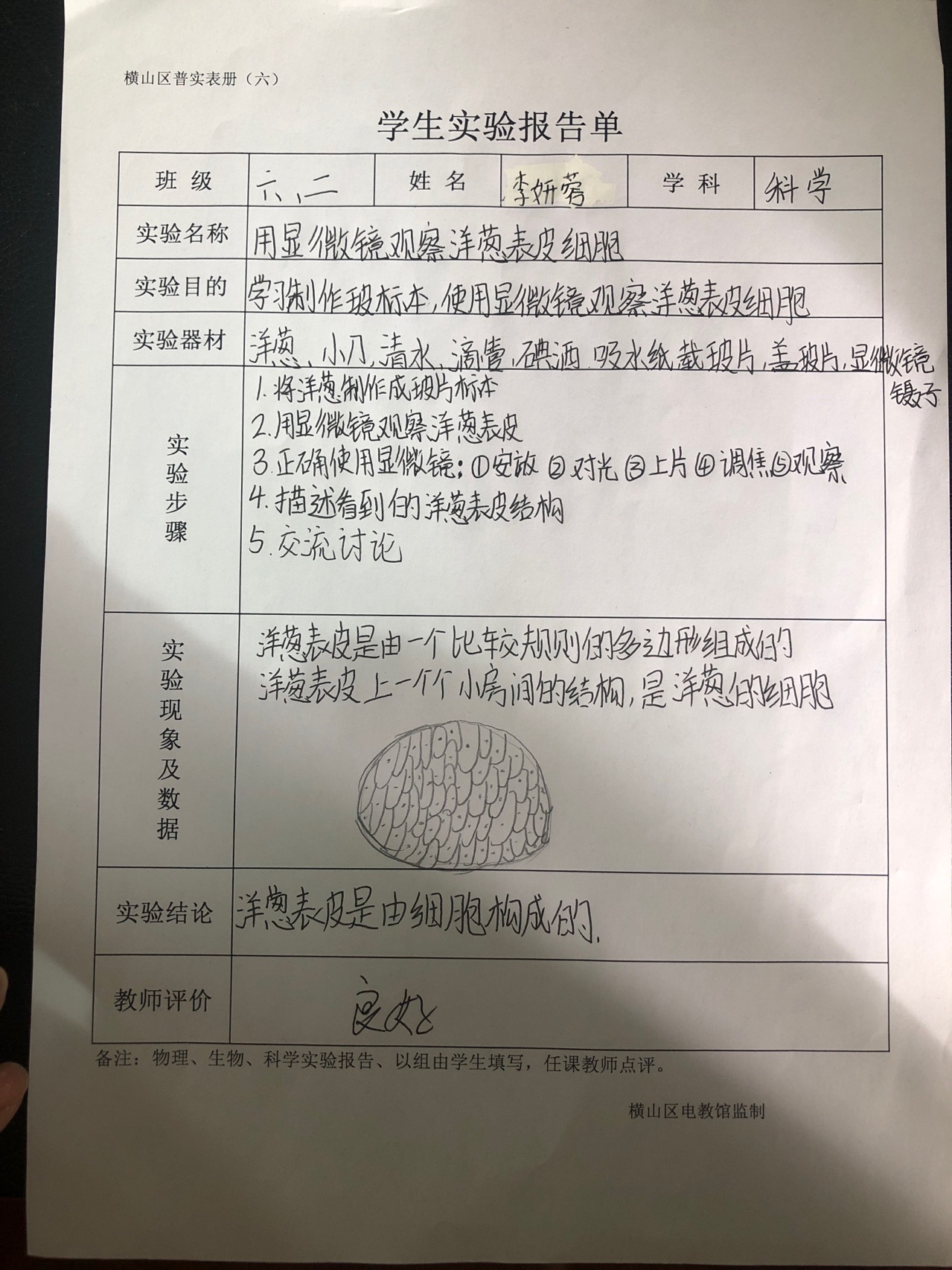 观察洋葱表皮细胞
