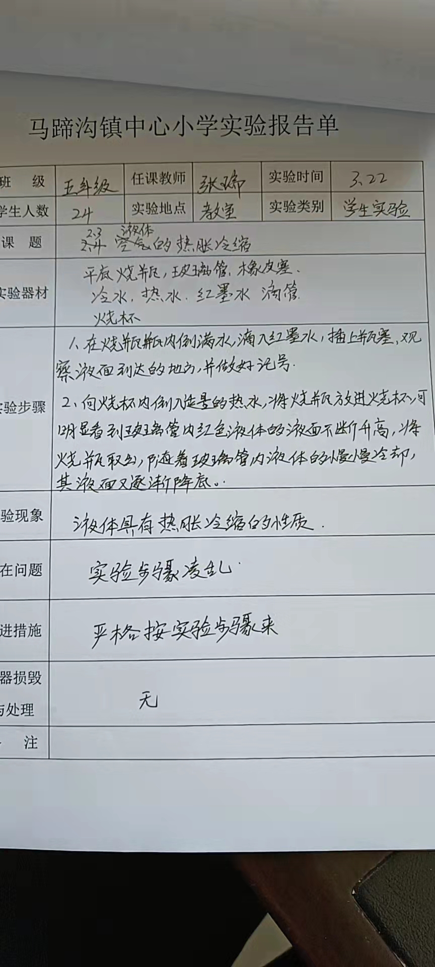 液体的热胀冷缩