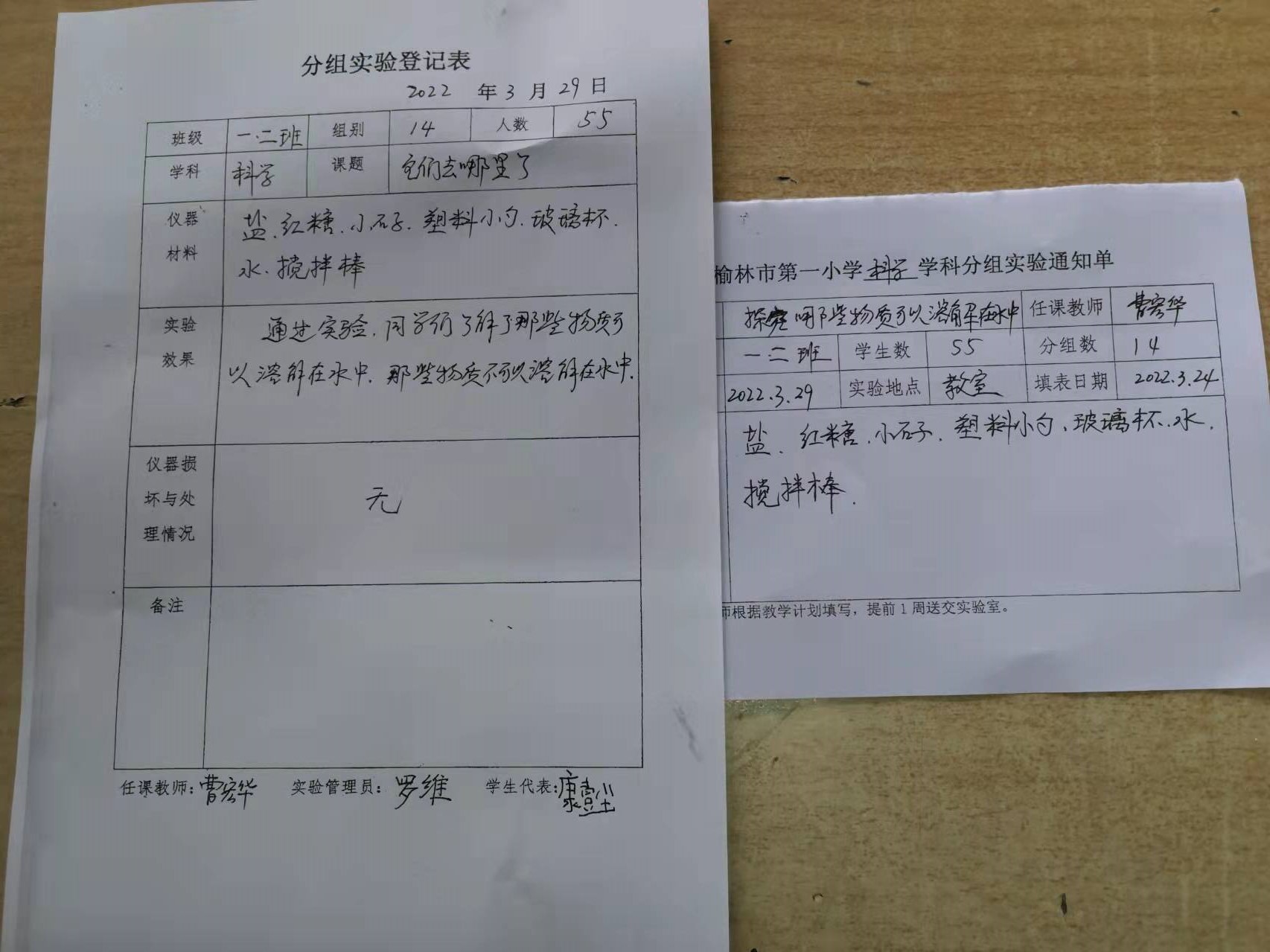 实验登记表
