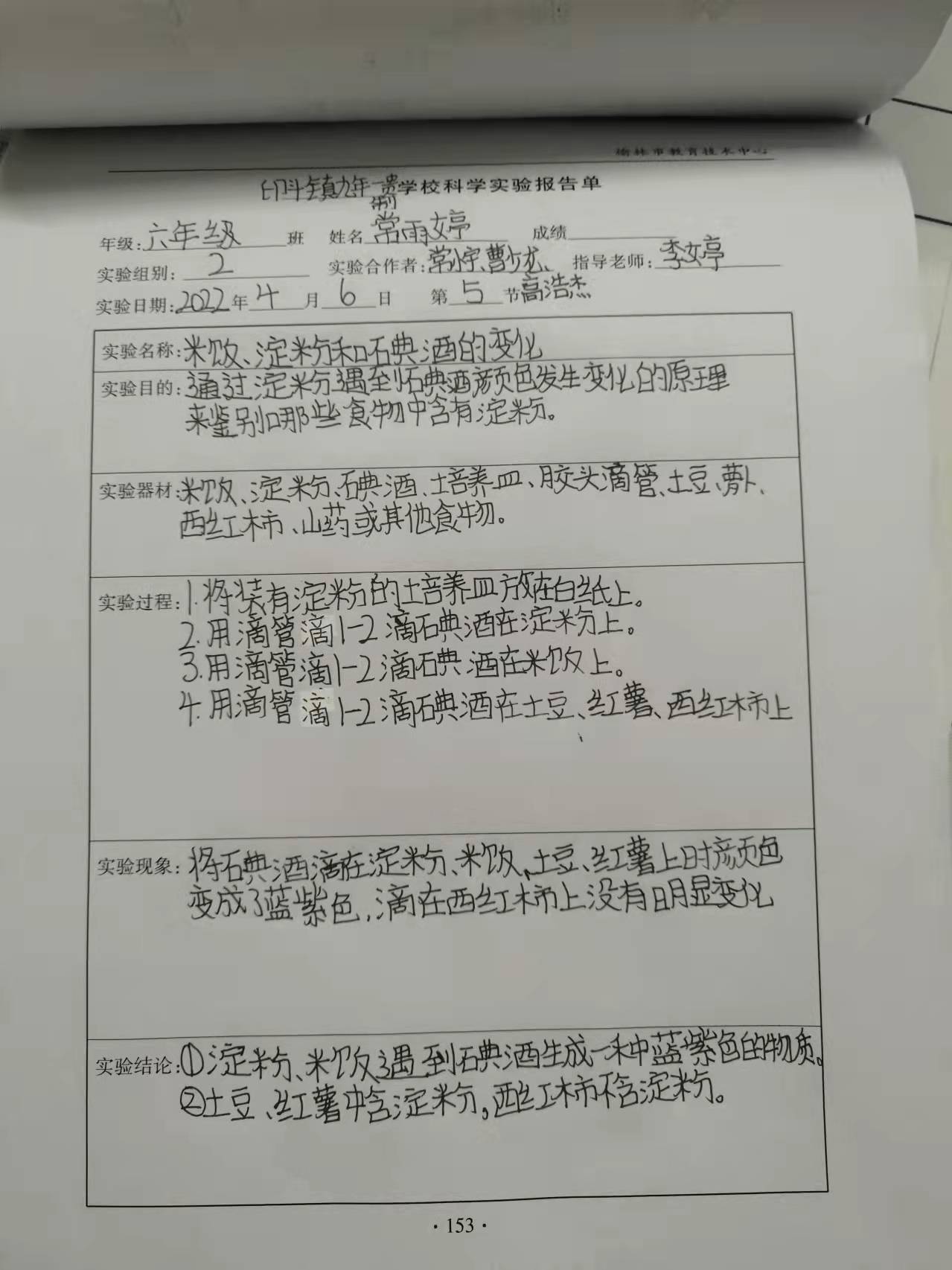 米饭、淀粉和碘酒的变化