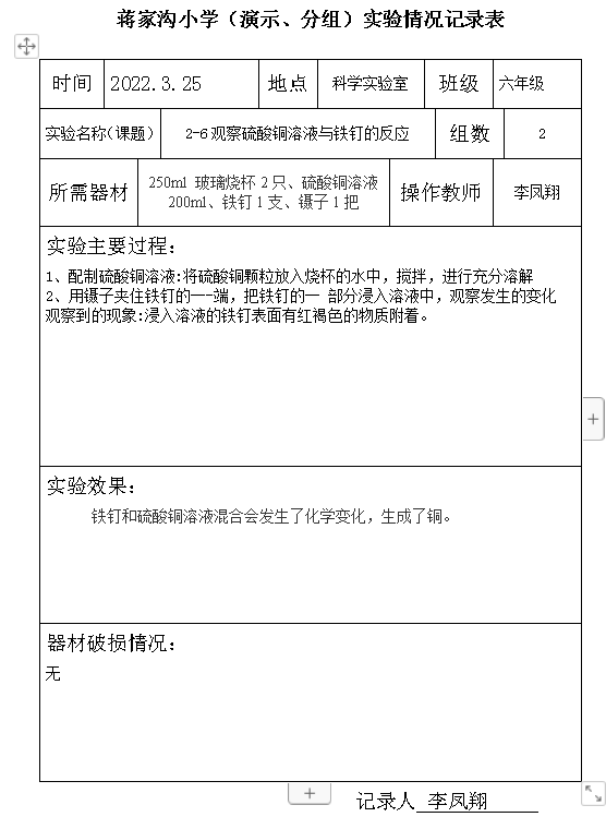 观察硫酸铜溶液与铁钉的反应