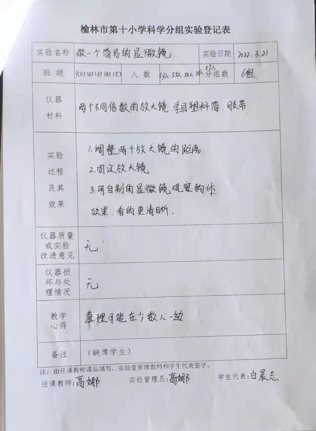 实验登记表