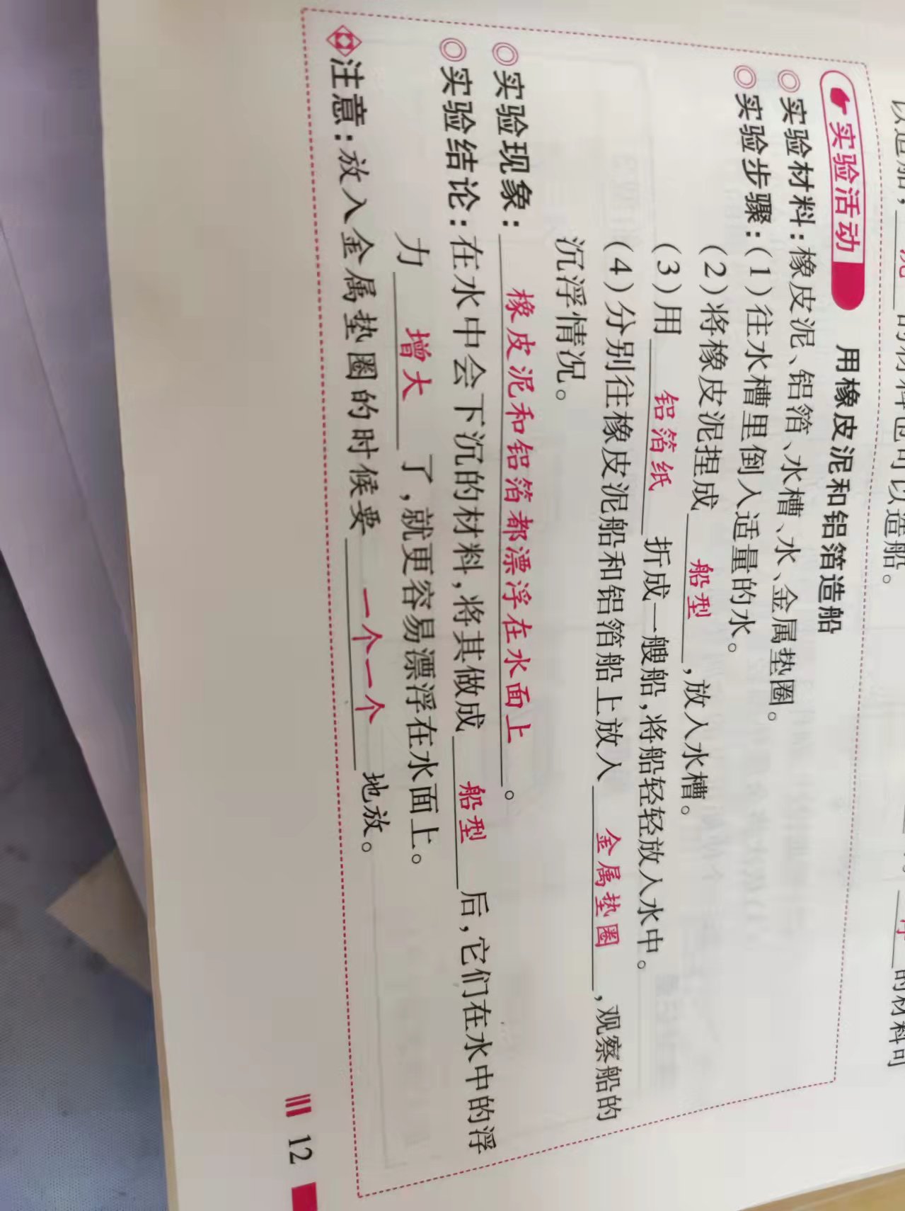 用橡皮泥和铝箔纸造船