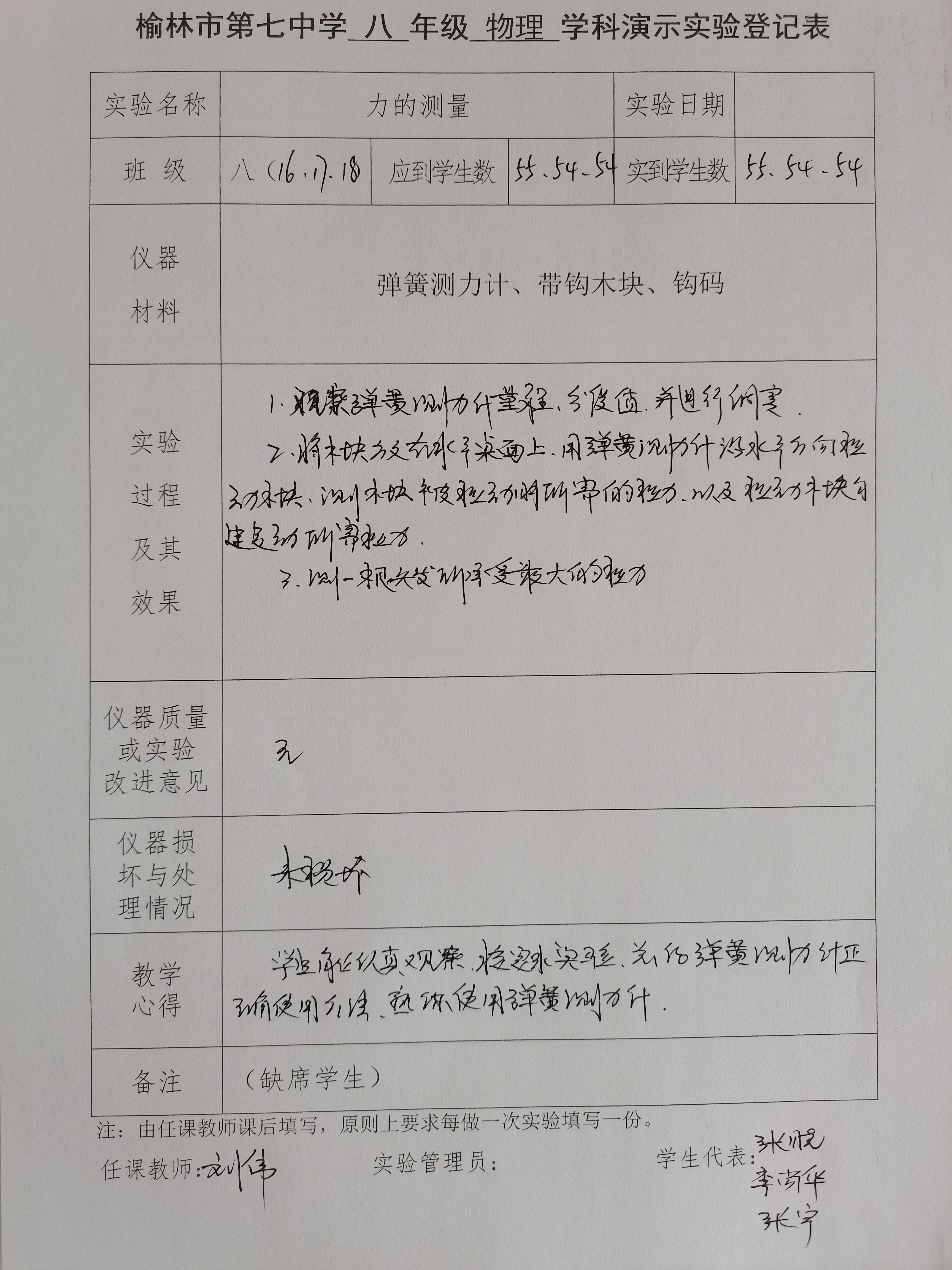 实验登记表