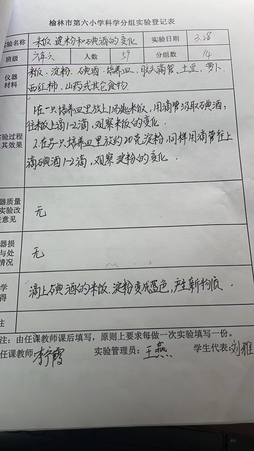 实验登记表