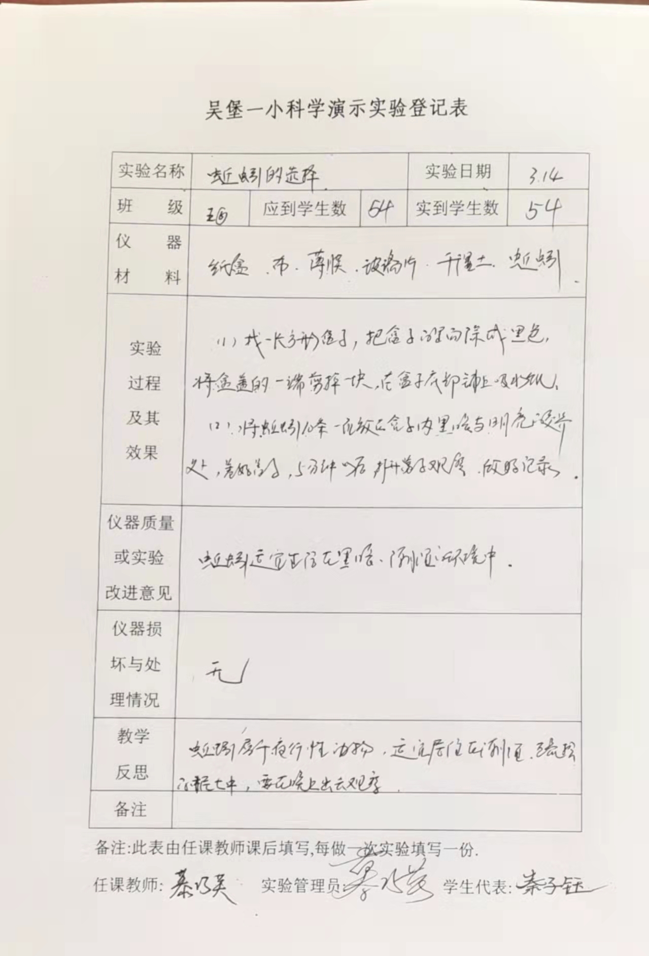 实验登记表