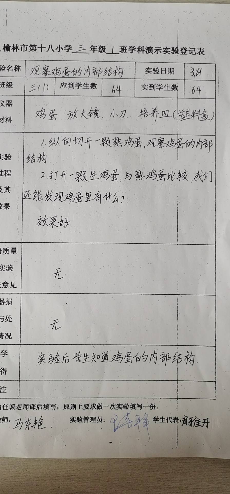 观察鸡蛋的内部结构