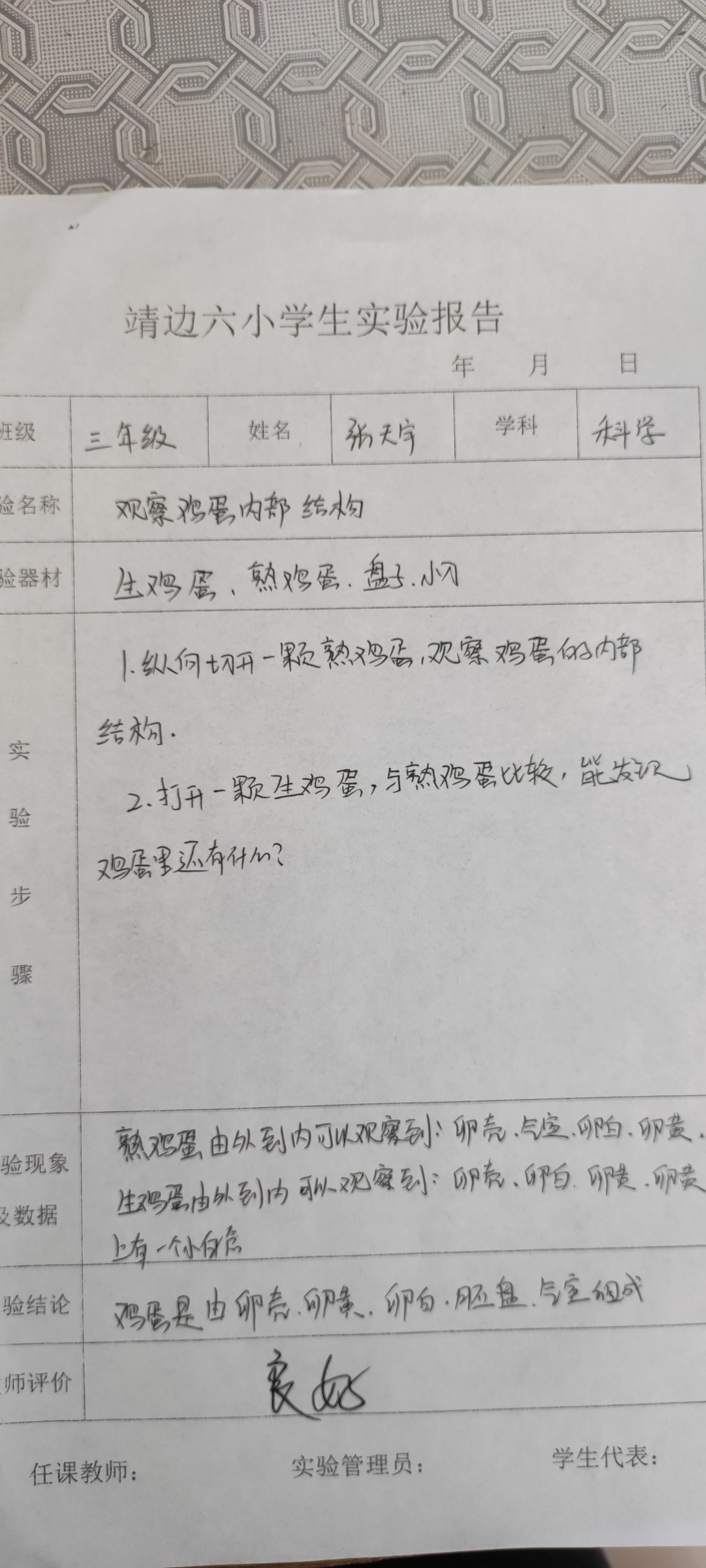 观察鸡蛋内部结构