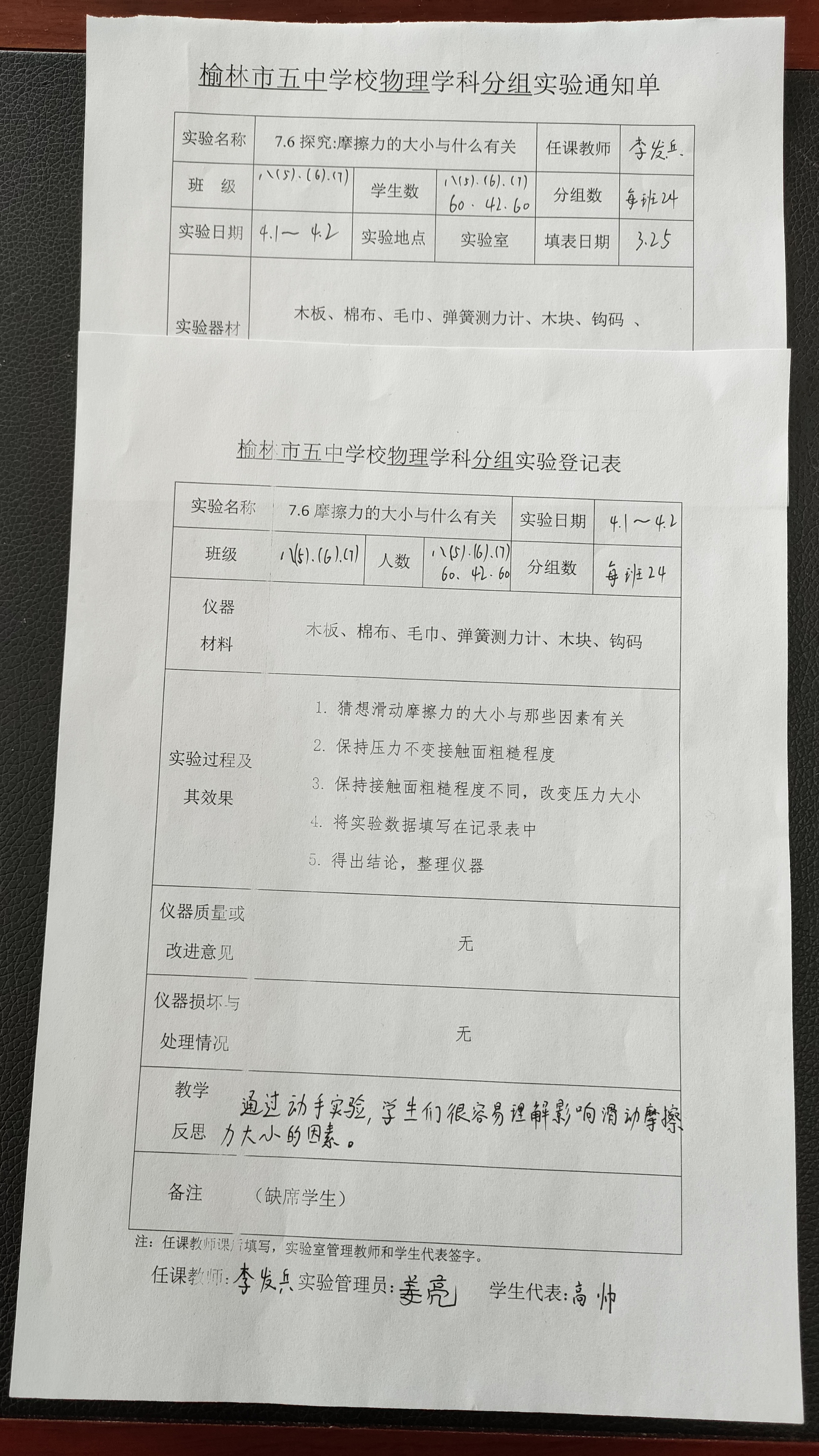 实验登记表
