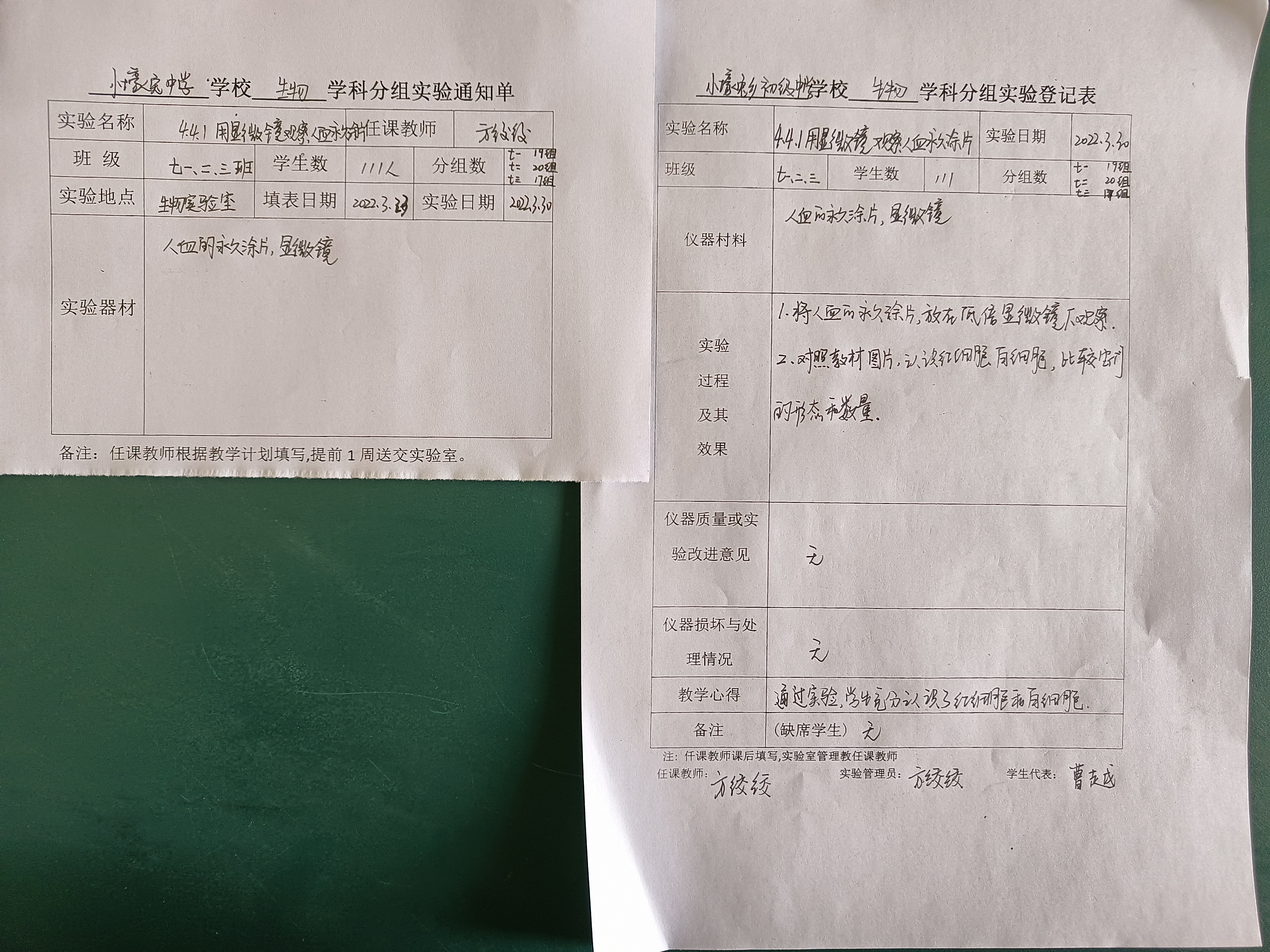 实验登记表