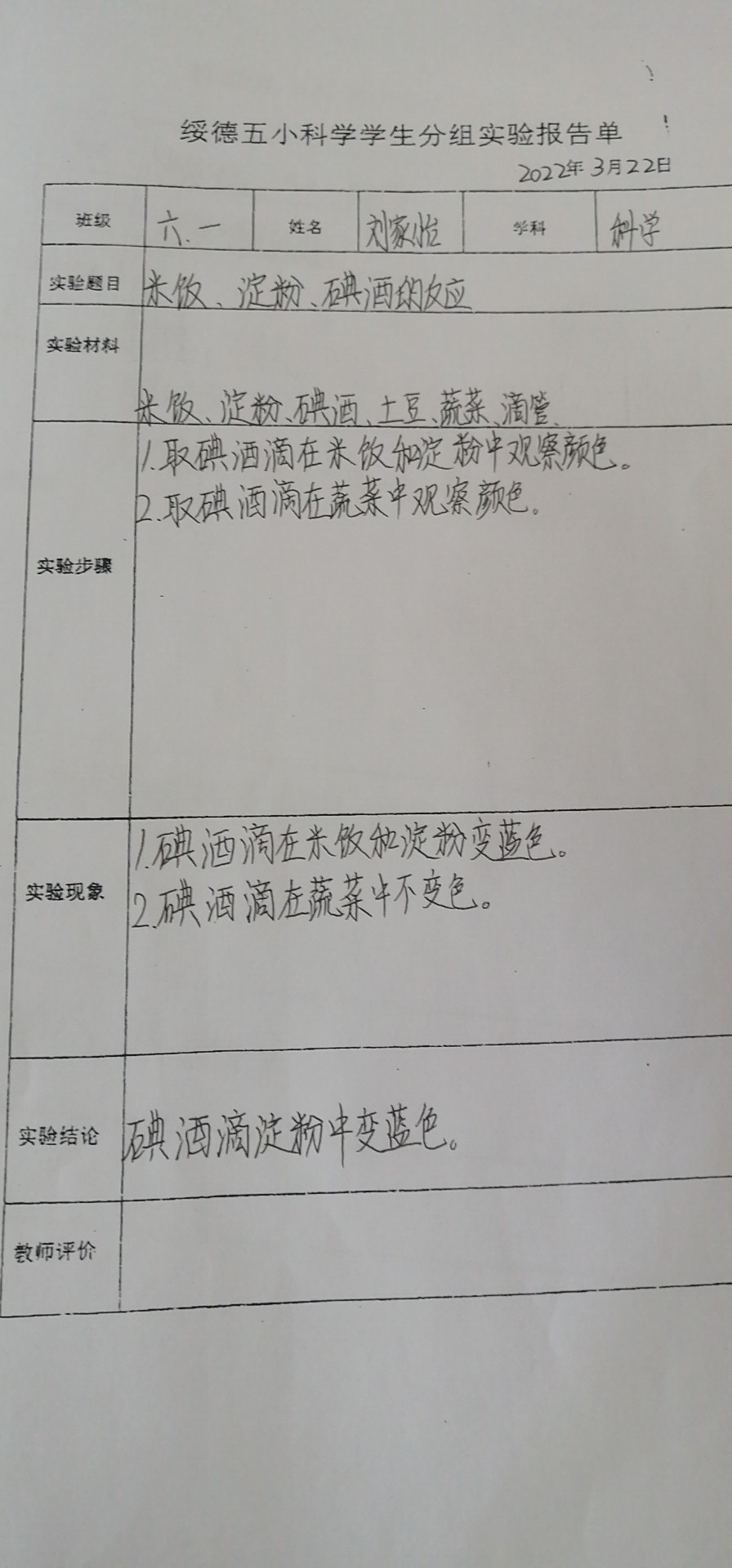 米饭淀粉碘酒的变化