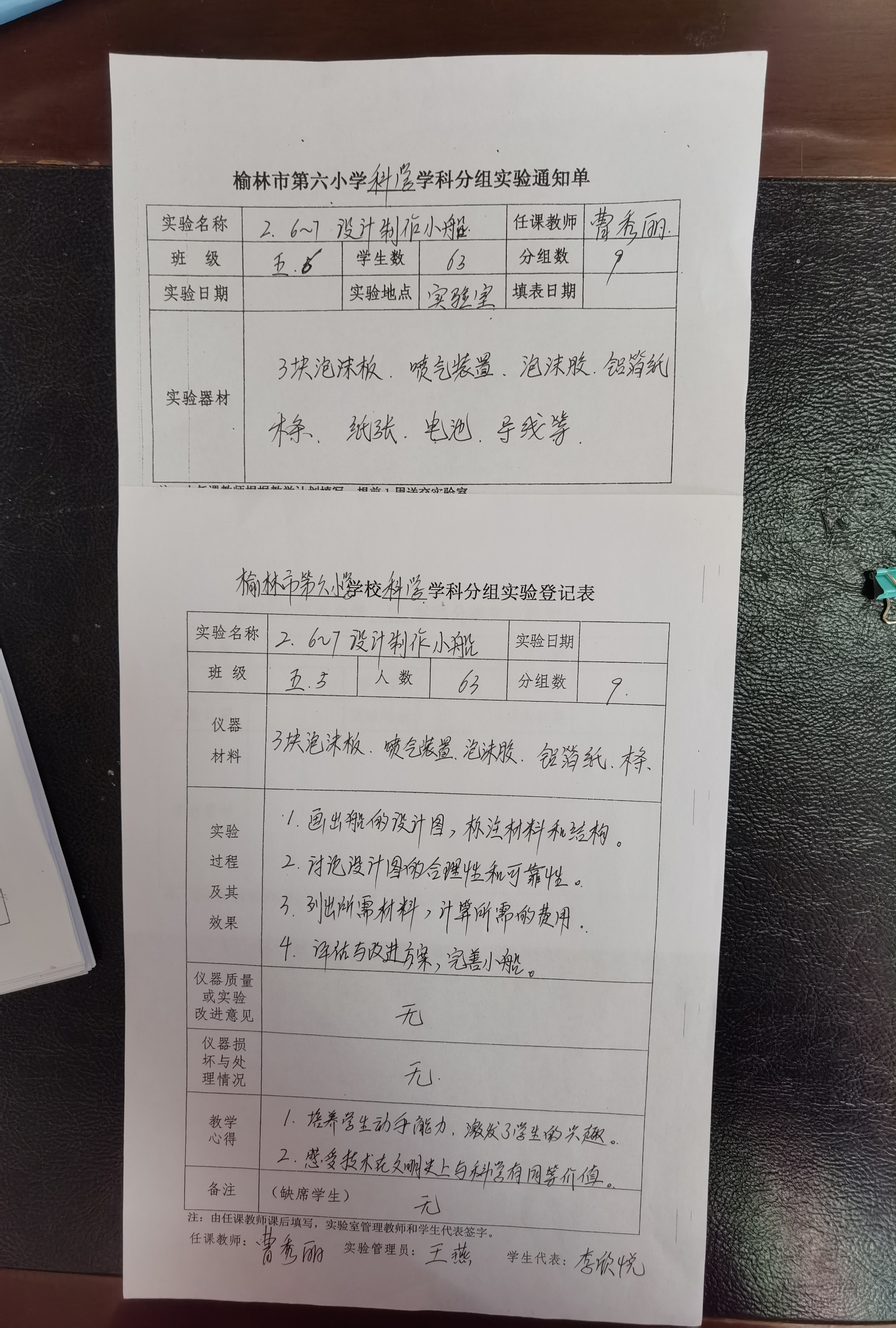 实验登记表