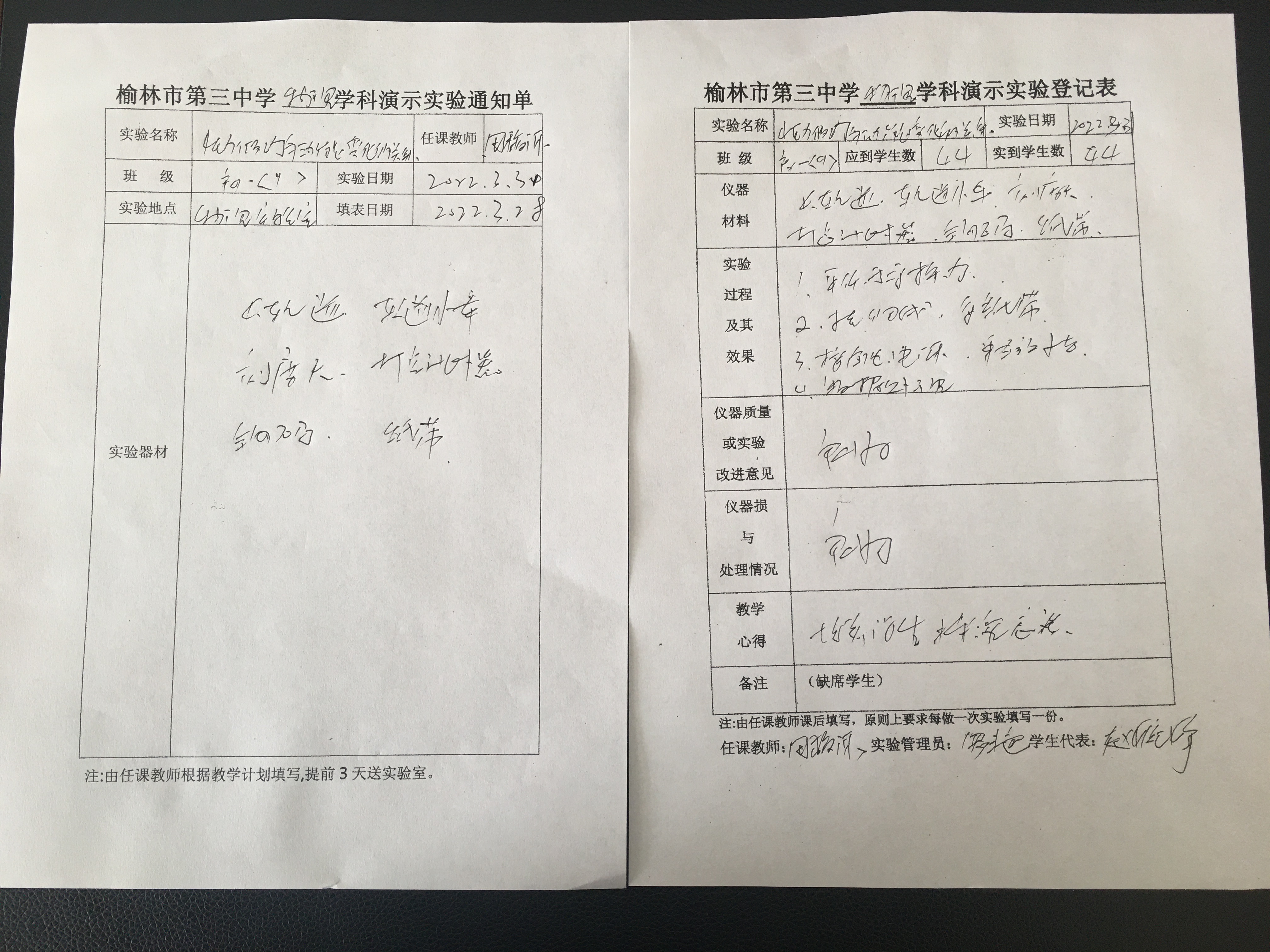 实验登记表