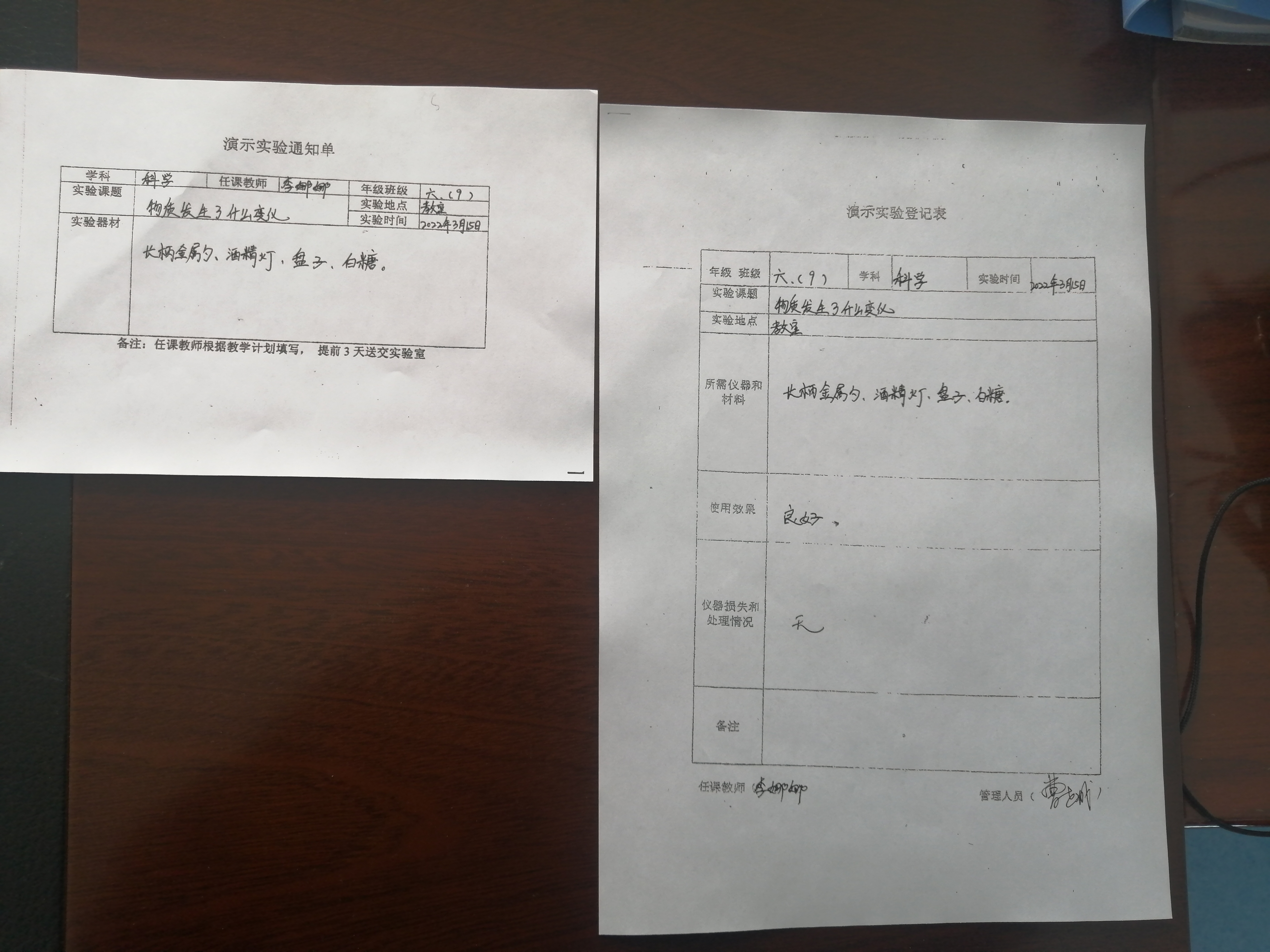 实验登记表
