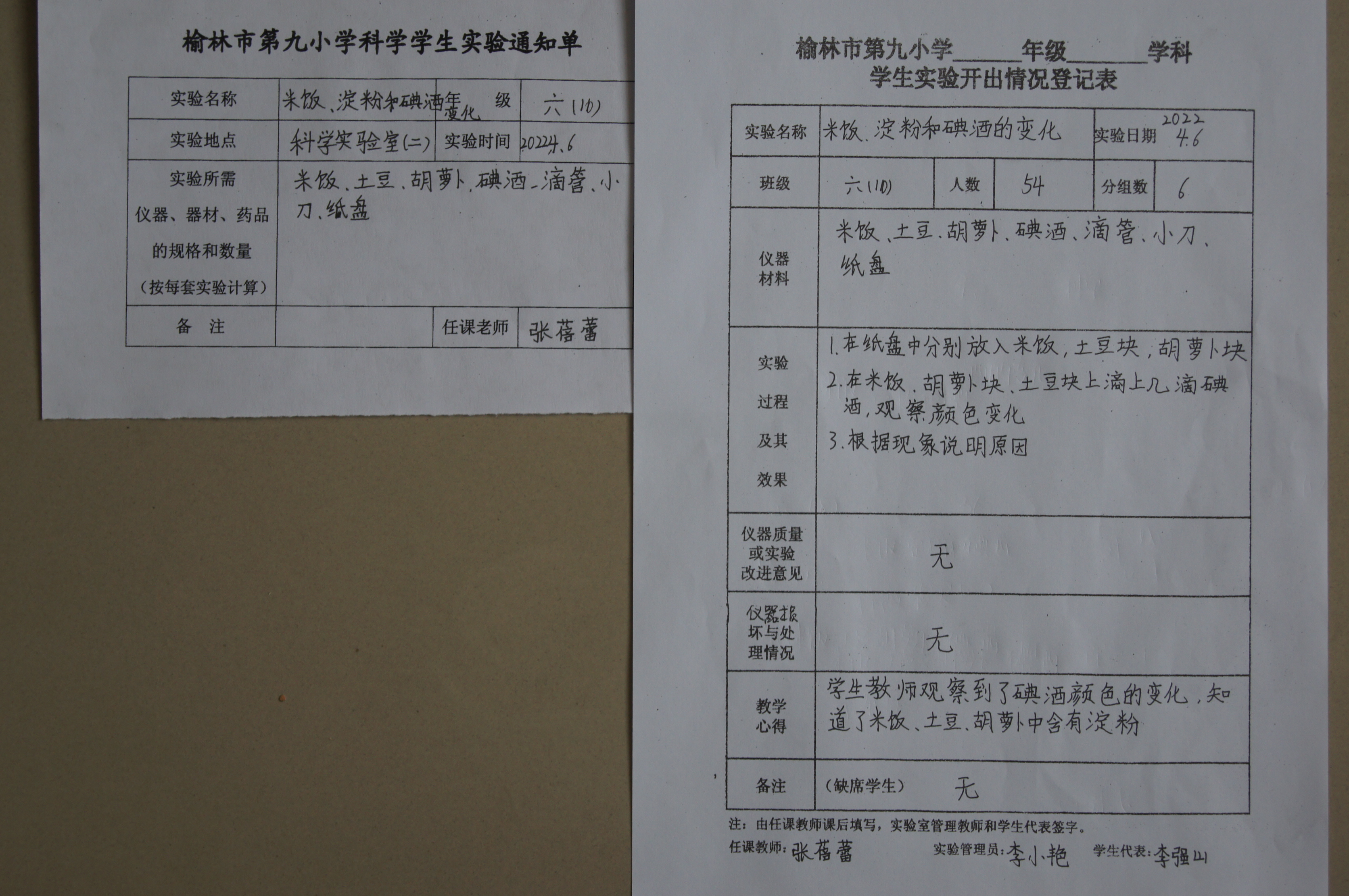 实验登记表