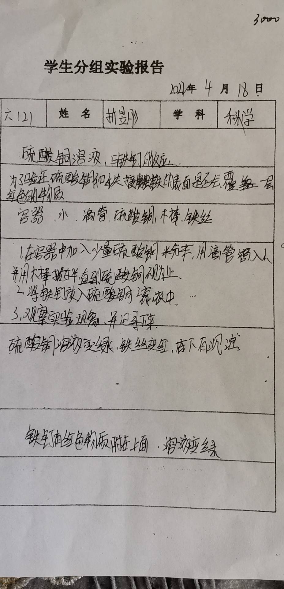 年级科目:六年级科学