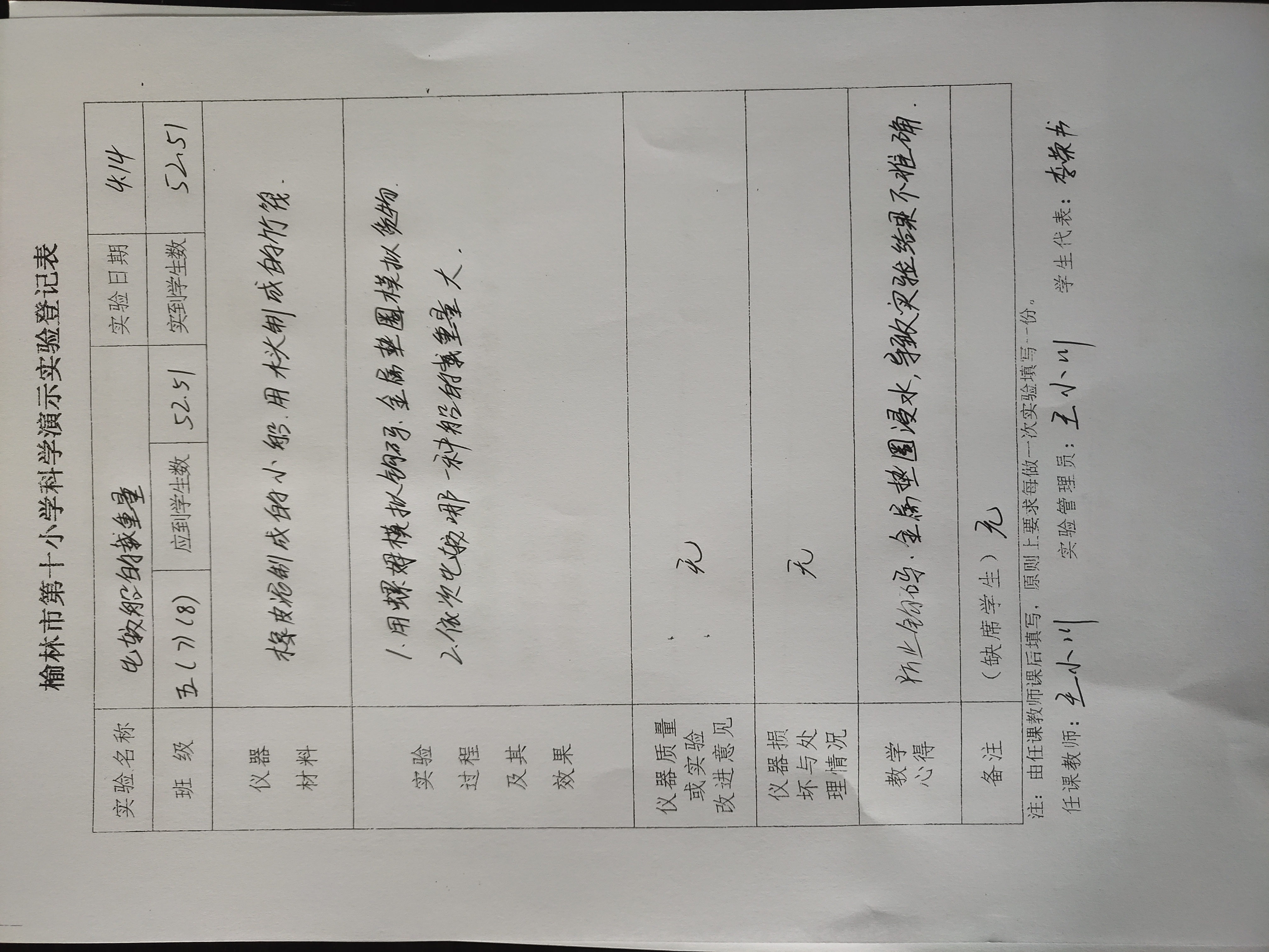 实验登记表